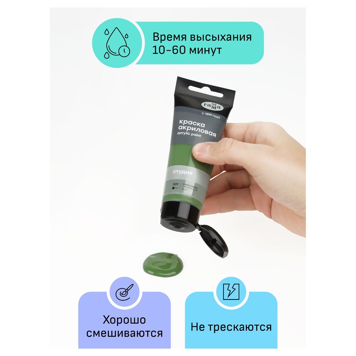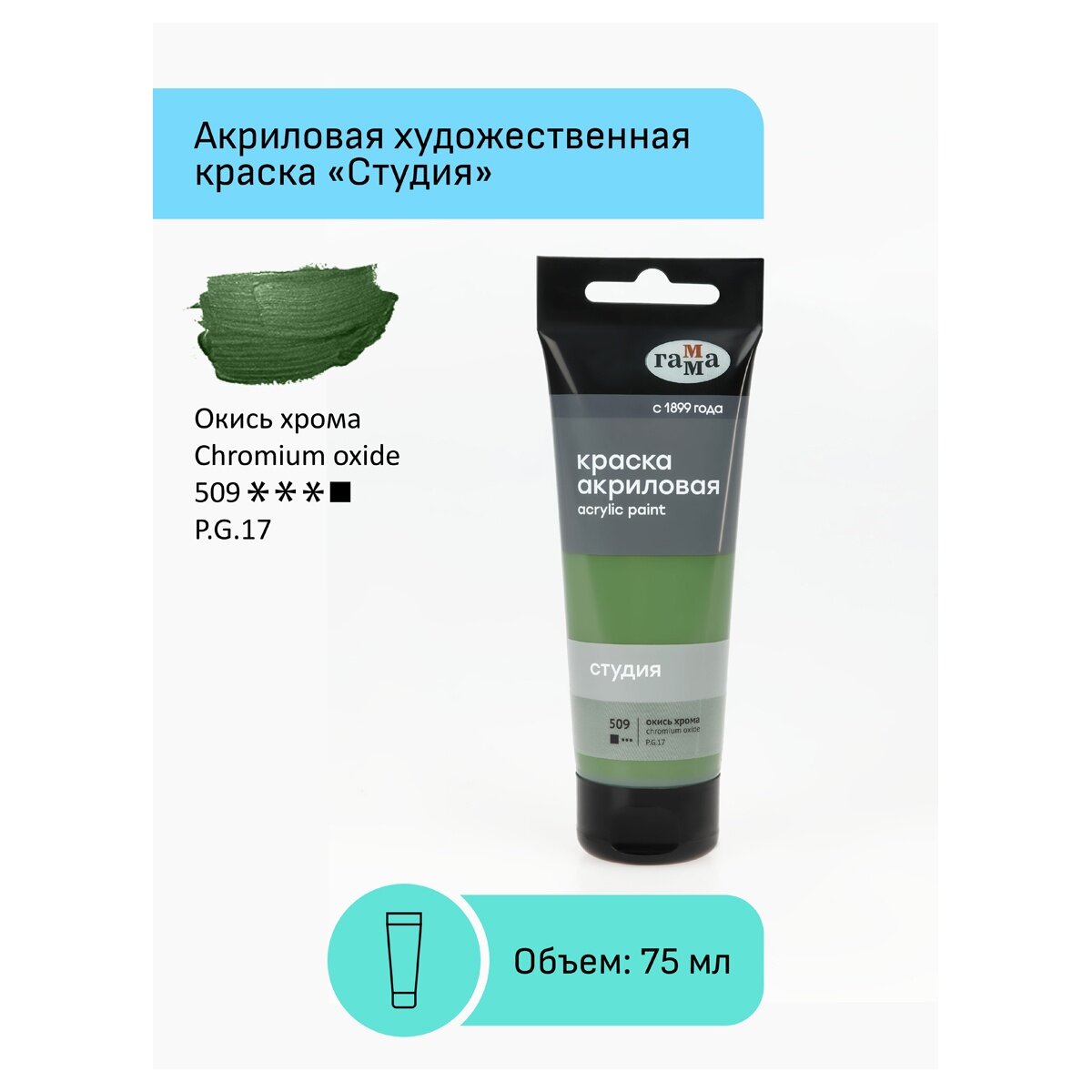 Купить Краска акриловая художественная Гамма "Студия", 75 мл, пластиковая туба, окись хрома