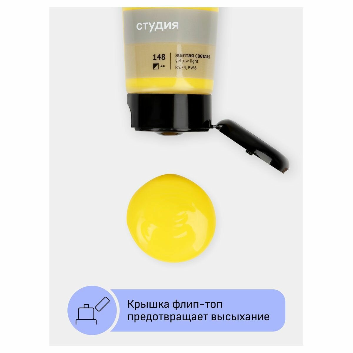 Краска акриловая Гамма художественная "Студия", 75мл, пластиковая туба, желтая лимонная