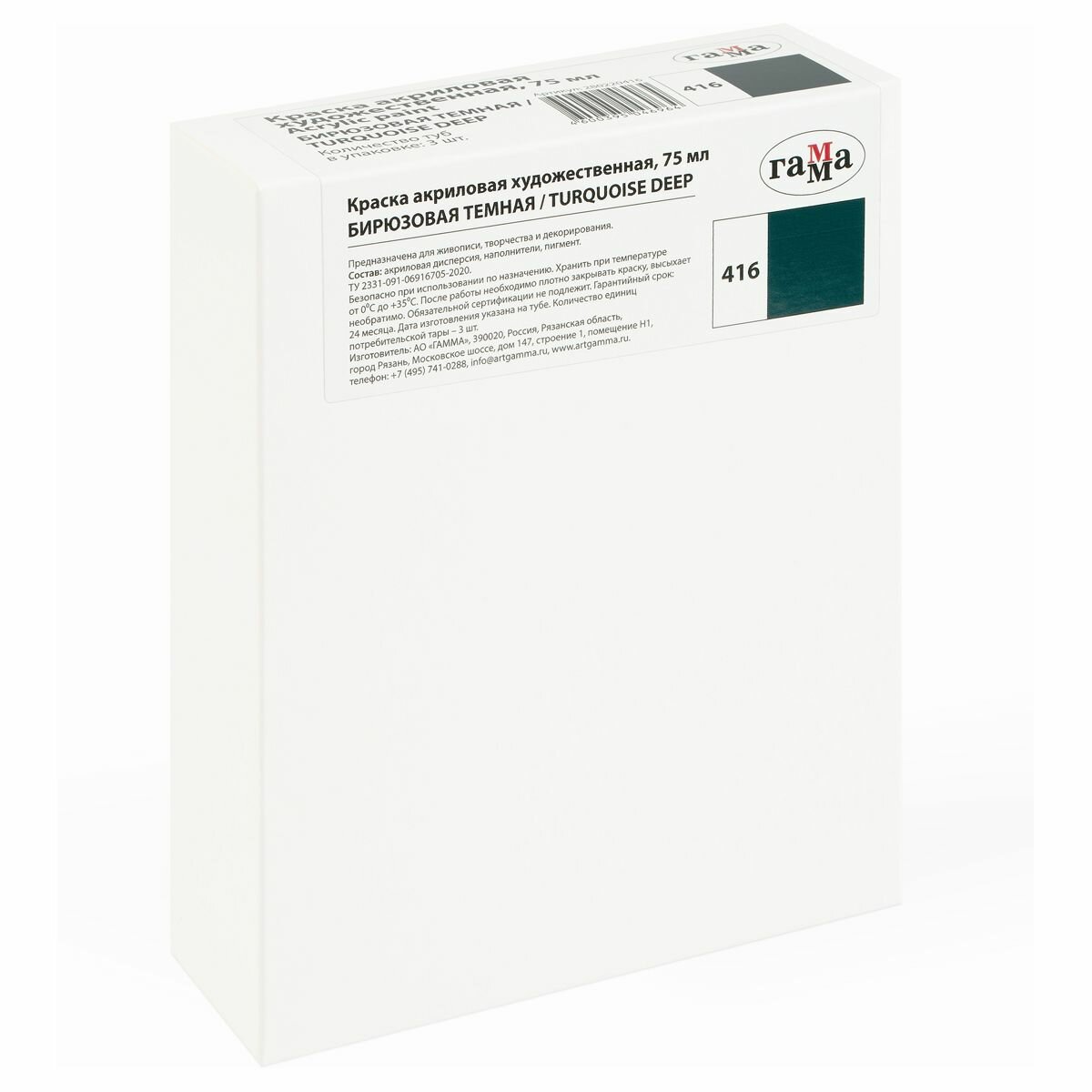 Купить Краска Акриловая Художественная Гамма "Студия", 75мл, Бирюзовая Темная