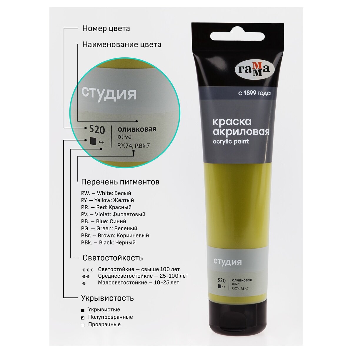 Краска акриловая художественная Гамма "Студия", 110мл, пластиковая туба, оливковая