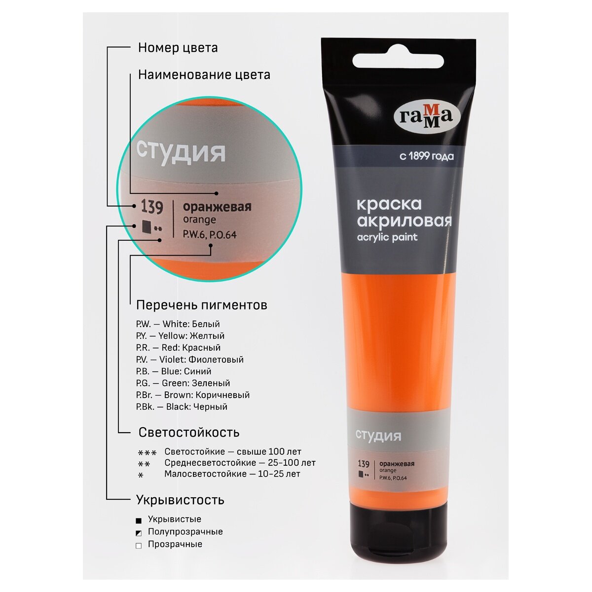 Гамма Акриловая краска Студия, пластиковая туба (280220), 75 мл, оранжевый