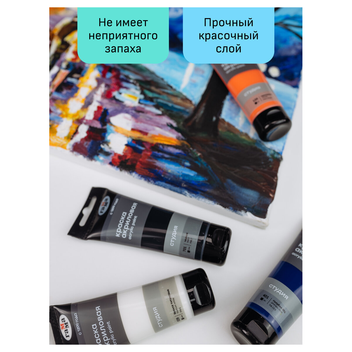 Краска акриловая художественная для рисования Гамма "Студия" профессиональная белая (белила титановые), туба 75 мл / Акрил для живописи и творчества для художников