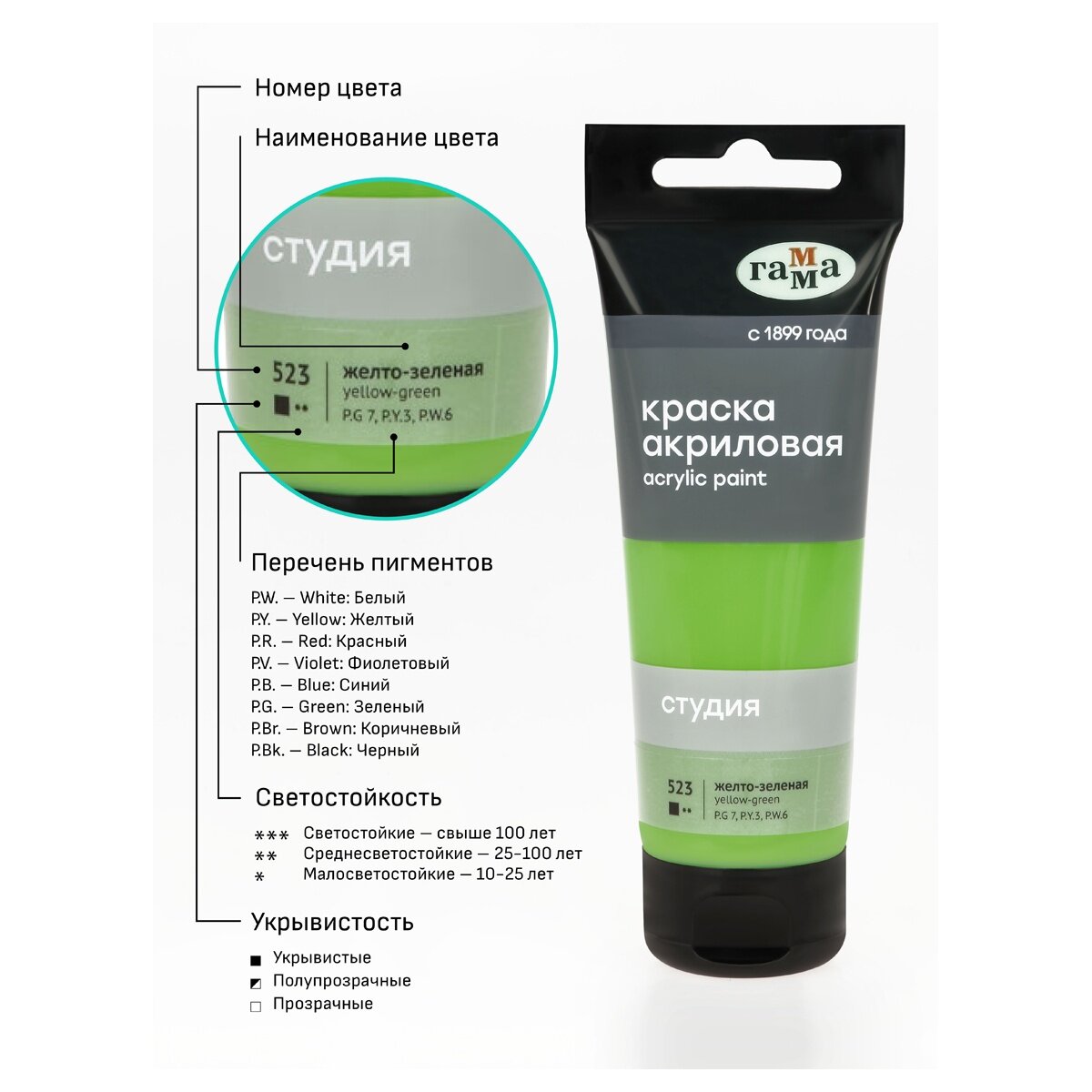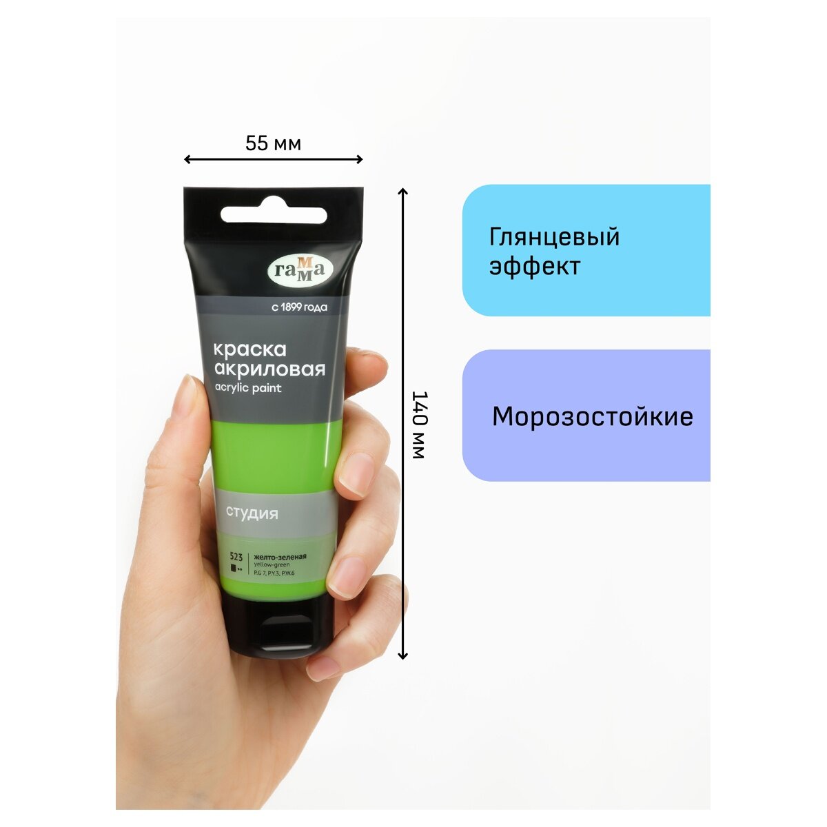 Купить Гамма Акриловая краска Студия, пластиковая туба (280220), 75 мл, желто-зеленая
