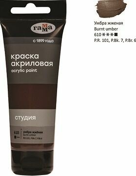 Купить Краска акриловая художественная Гамма "Студия", 75 мл, пластиковая туба, умбра жженая (280220610)