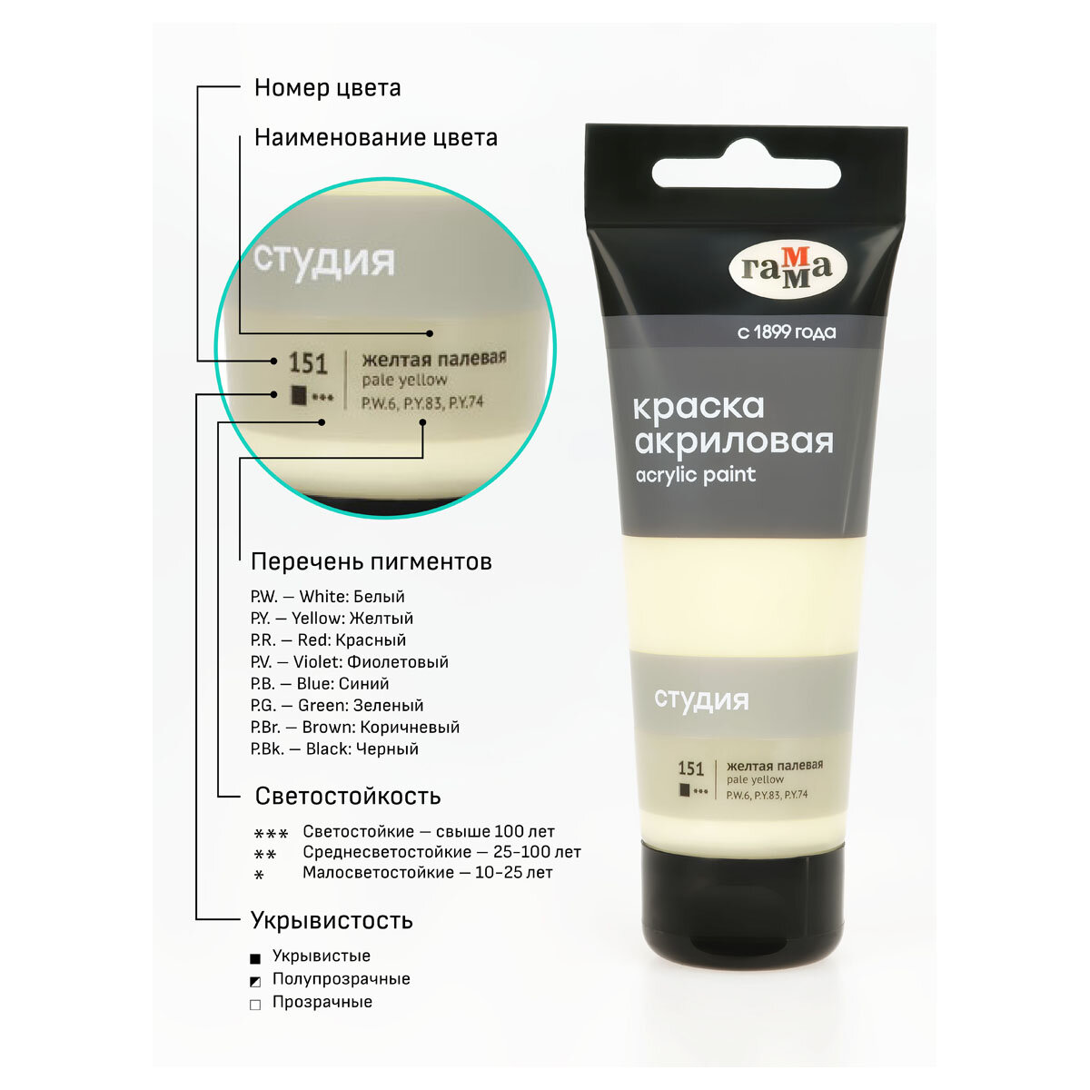 СохранитьКраска акриловая художественная Гамма "Студия", 75мл, пластиковая туба, желтая палевая интересное: