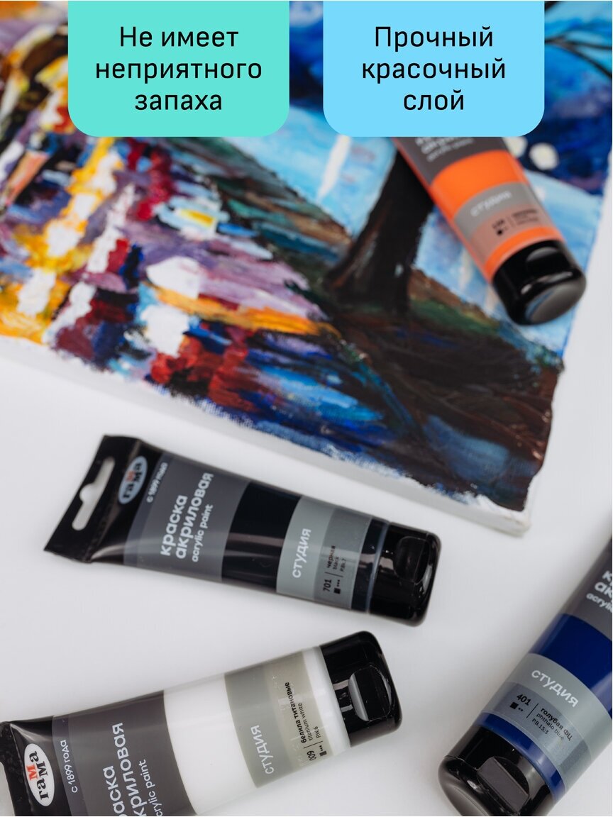 Краска акриловая художественная для рисования Гамма "Студия" профессиональная белая (белила титановые), туба 75 мл / Акрил для живописи и творчества для художников