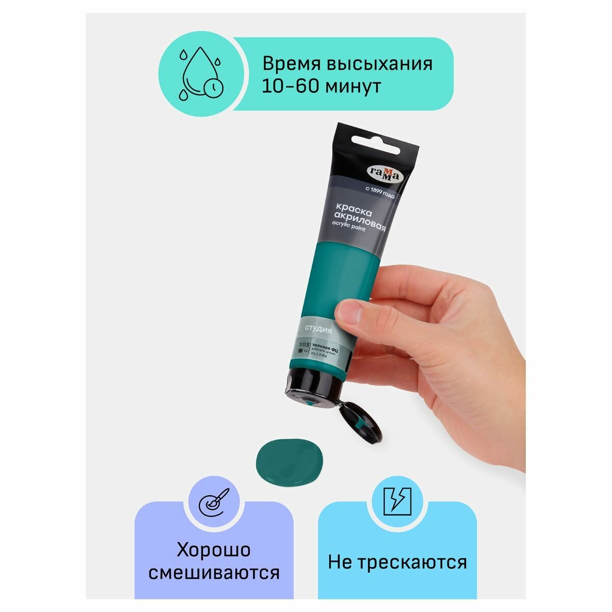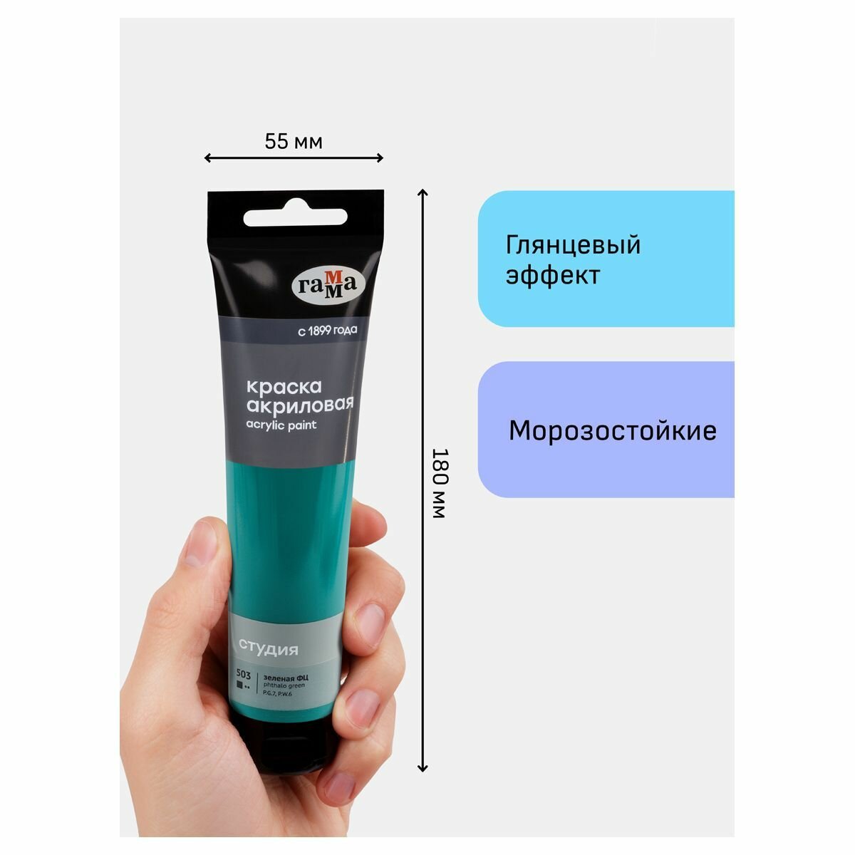 Купить Краска акриловая художественная Гамма "Студия", 110мл, пластиковая туба, зеленая фц