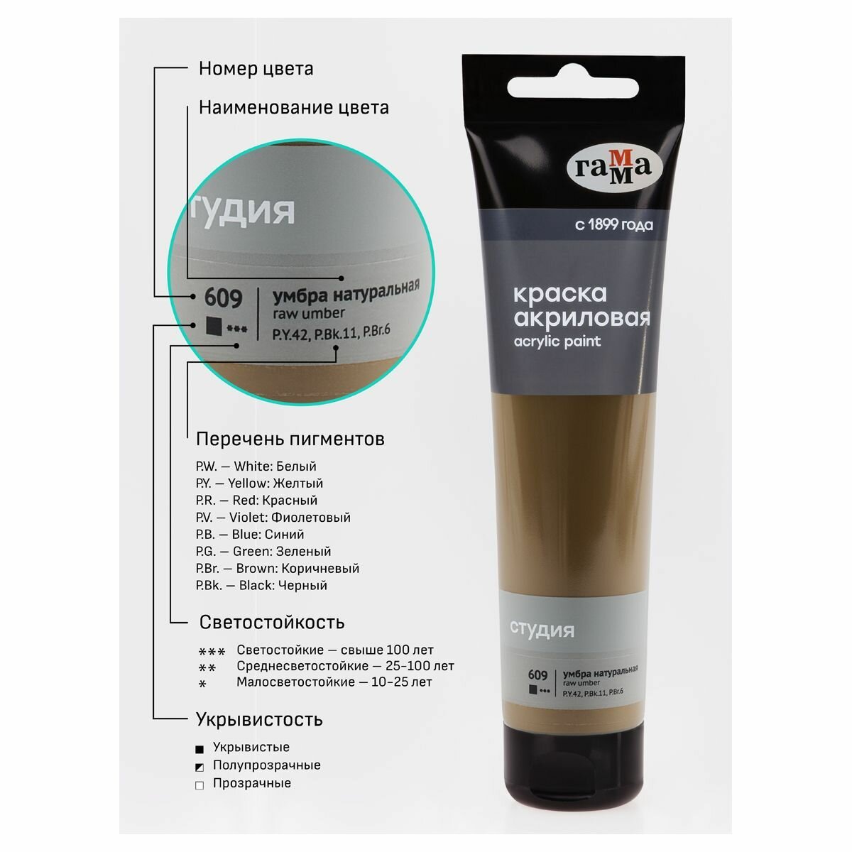 Сохранить6 шт - Краска акриловая художественная Гамма "Студия", 110мл, пластиковая туба, умбра натуральная интересное: