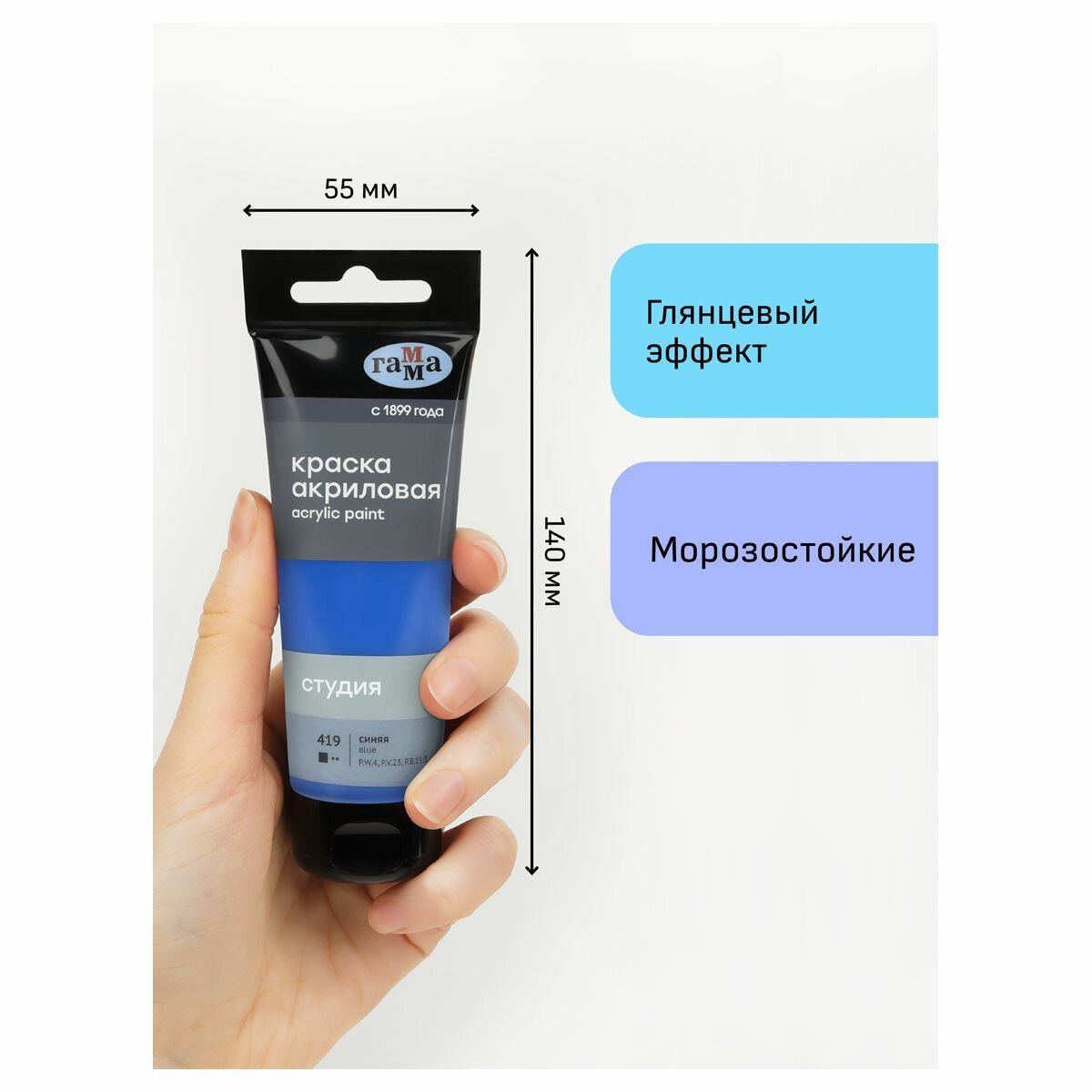 Краска акриловая художественная Гамма "Студия", пластиковая туба, 110мл, голубая (2802110418)