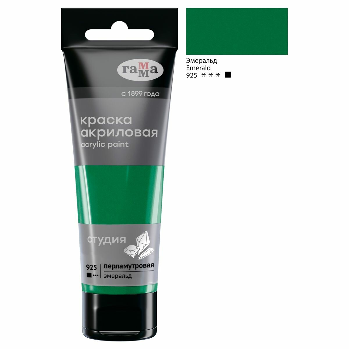 Краска акриловая художественная перламутровая Гамма "Студия", пластиковая туба, 75мл, эмеральд (280220925), 3шт.