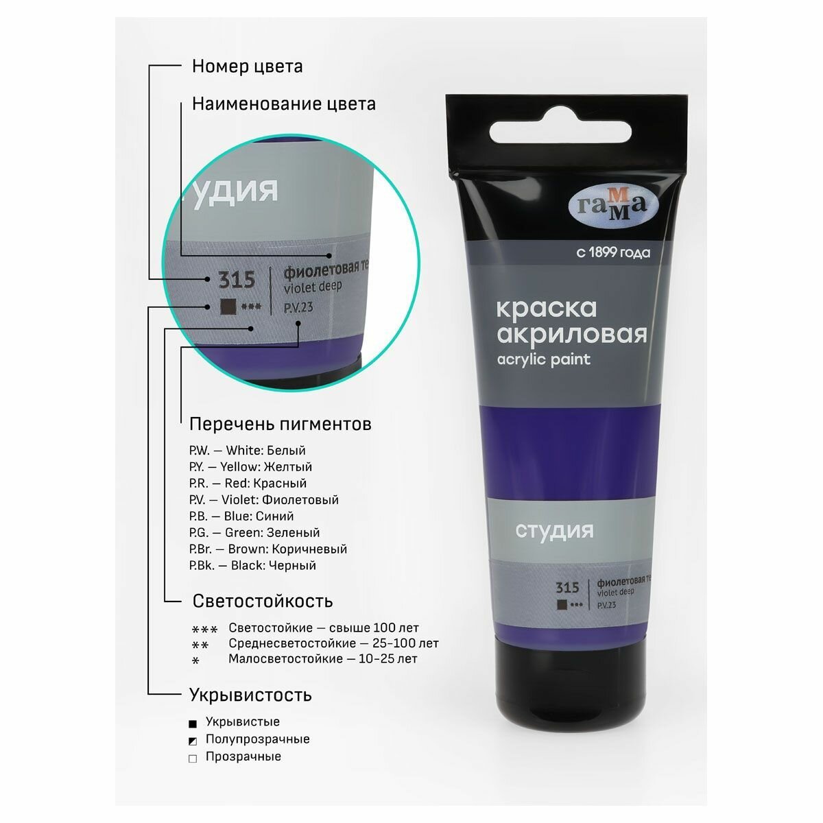 Сохранить6 шт - Краска акриловая художественная Гамма "Студия", 75мл, пластиковая туба, фиолетовая темная интересное: