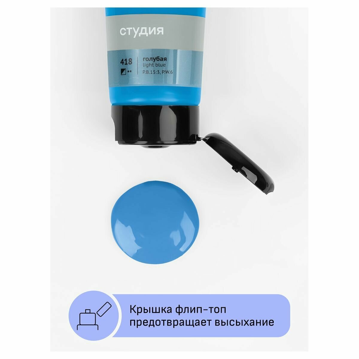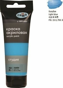 Краска акриловая художественная Гамма "Студия", пластиковая туба, 110мл, голубая (2802110418)