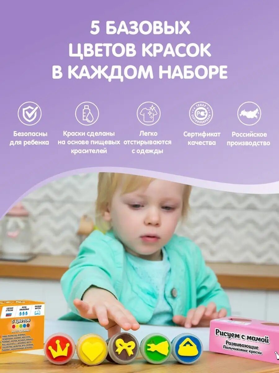 Пальчиковые краски со штампами Molly Первые краски 5 цв. интересное: