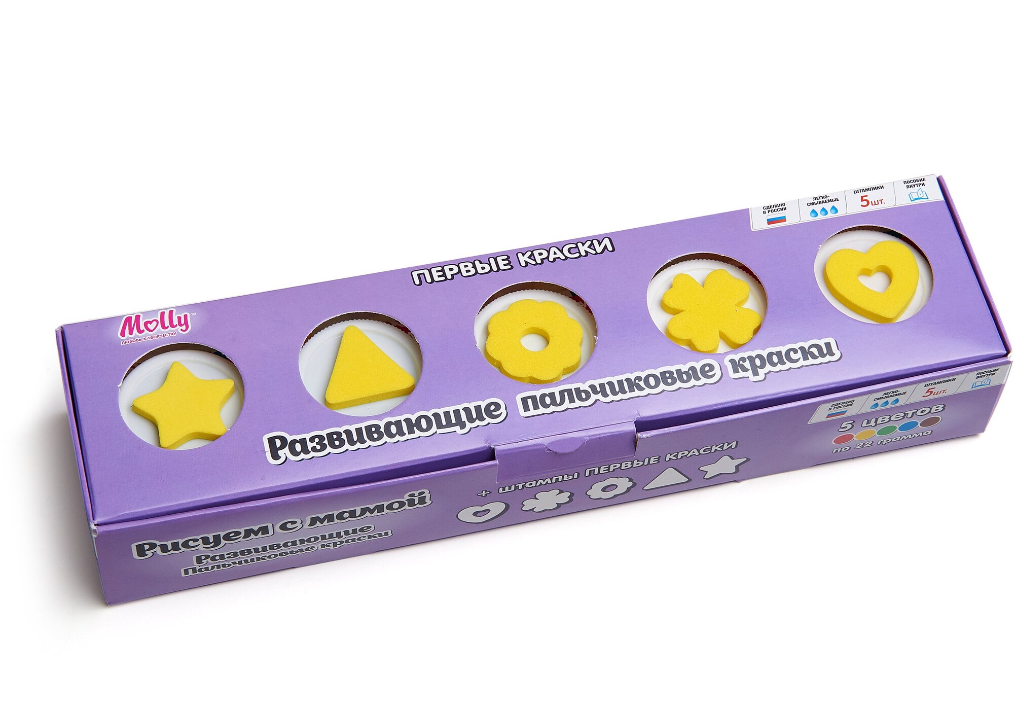 Купить Пальчиковые краски со штампами Molly Первые краски 5 цв.