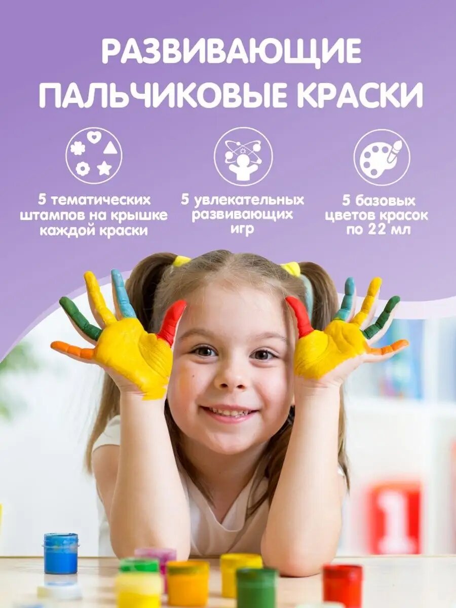 | Комплектация | пальчиковые краски 5 цветов по 22 мл, штампы 5 шт, тематическое пособие |