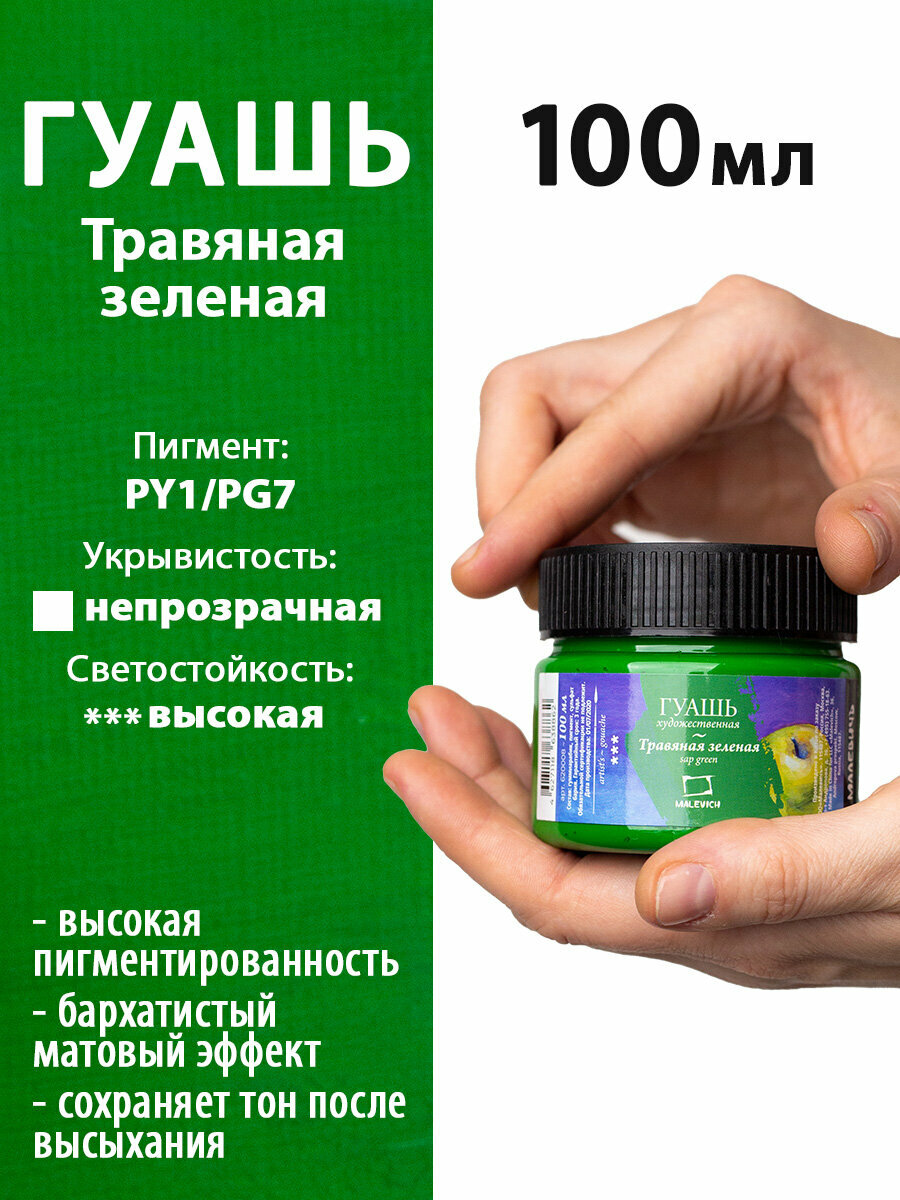 Гуашь Малевичъ травяная зеленая, 100 мл