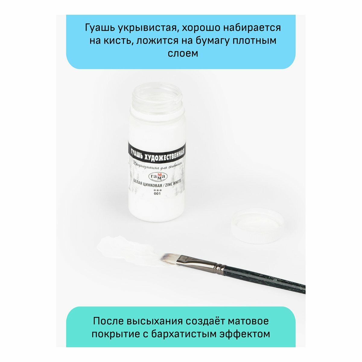 Гуашь художественная Гамма, белая цинковая, 110 мл., номер цвета 001