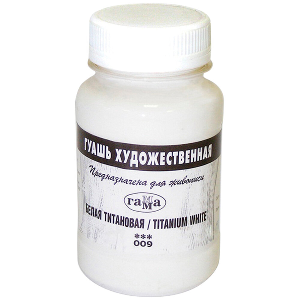 Гуашь художественная Гамма, белая титановая, 110 мл, цвет 009