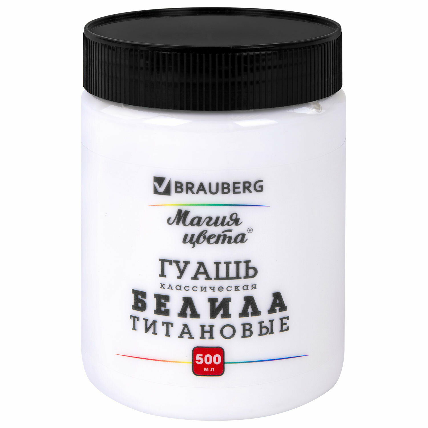 Гуашь для рисования белая художественная 1 штука 500 мл, белила титановые, Brauberg Магия Цвета, 880856 интересное: