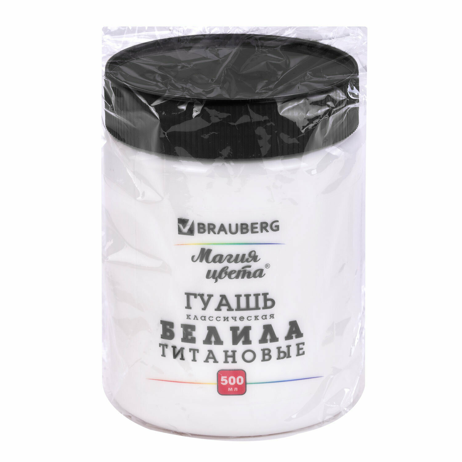 Купить Гуашь для рисования белая художественная 1 штука 500 мл, белила титановые, Brauberg Магия Цвета, 880856