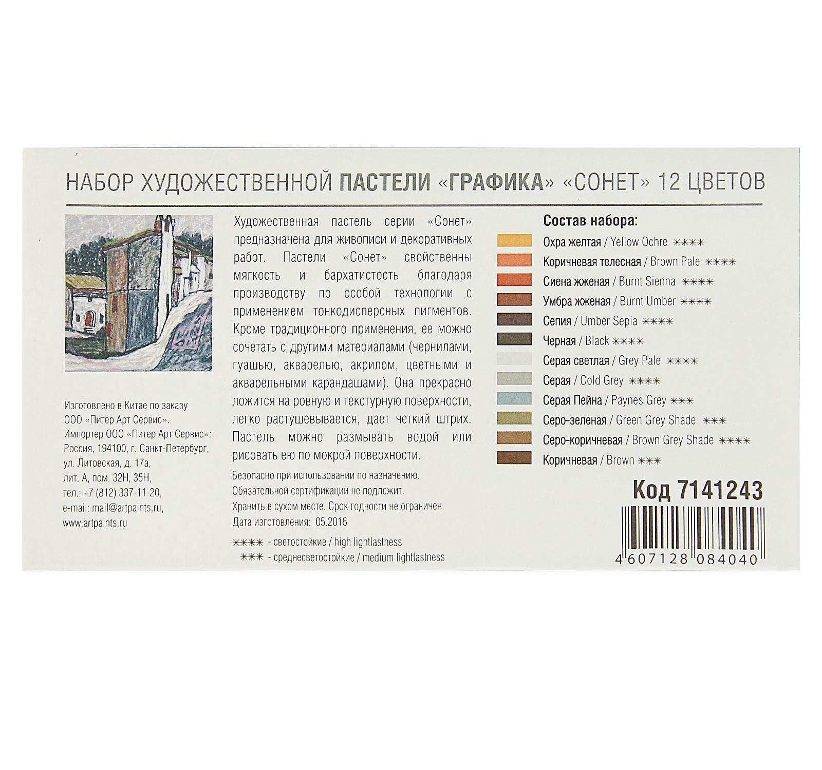 | Дополнительная информация | Пастель художественная, 12 цветов в картонной коробке 3 шт. |