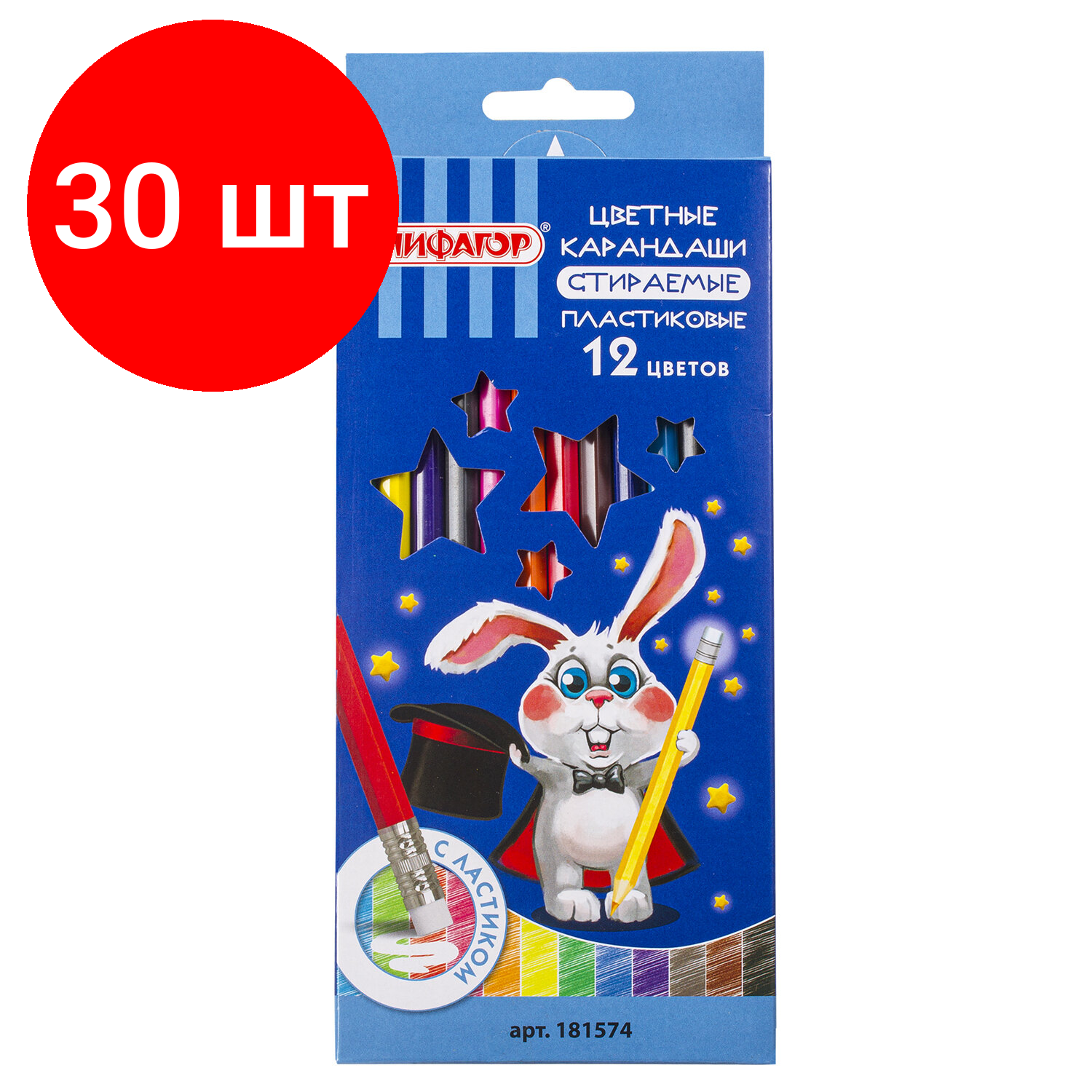 СохранитьКомплект 30 шт, Карандаши цветные стираемые с резинкой пифагор "магия", 12 цветов, пластиковые, 181574 интересное: