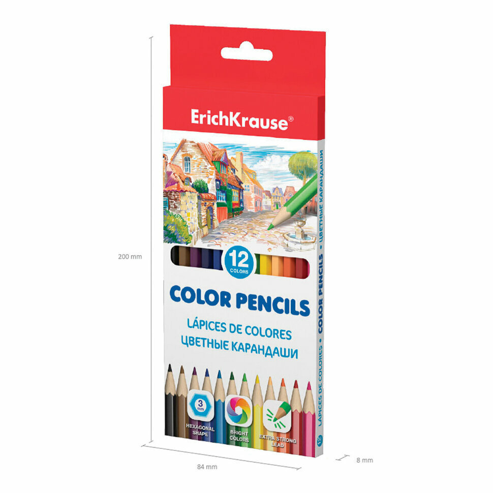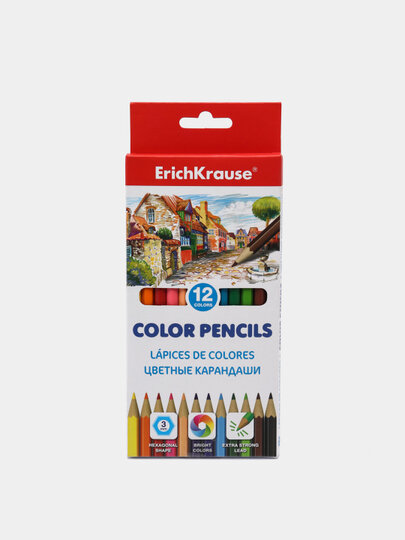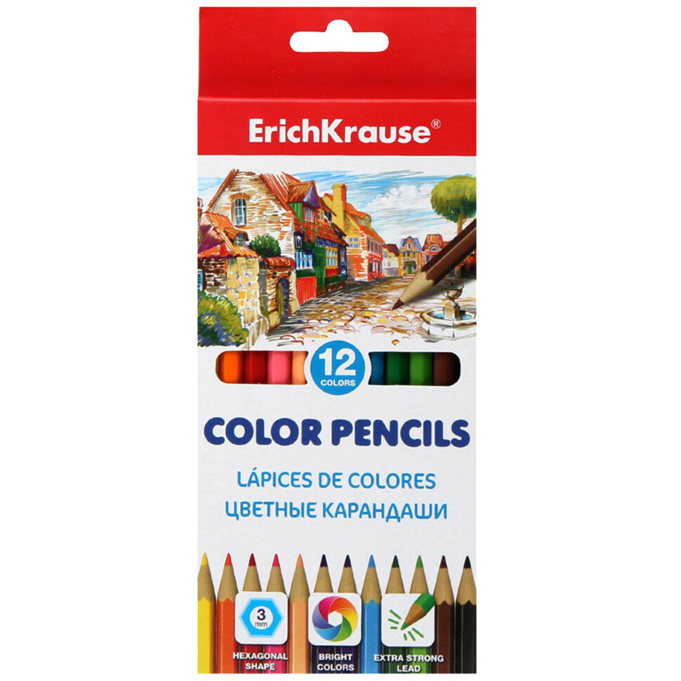 Карандаши цветные ERICH KRAUSE 12 цветов, шестигранные, заточенные, европодвес, 49882 интересное: