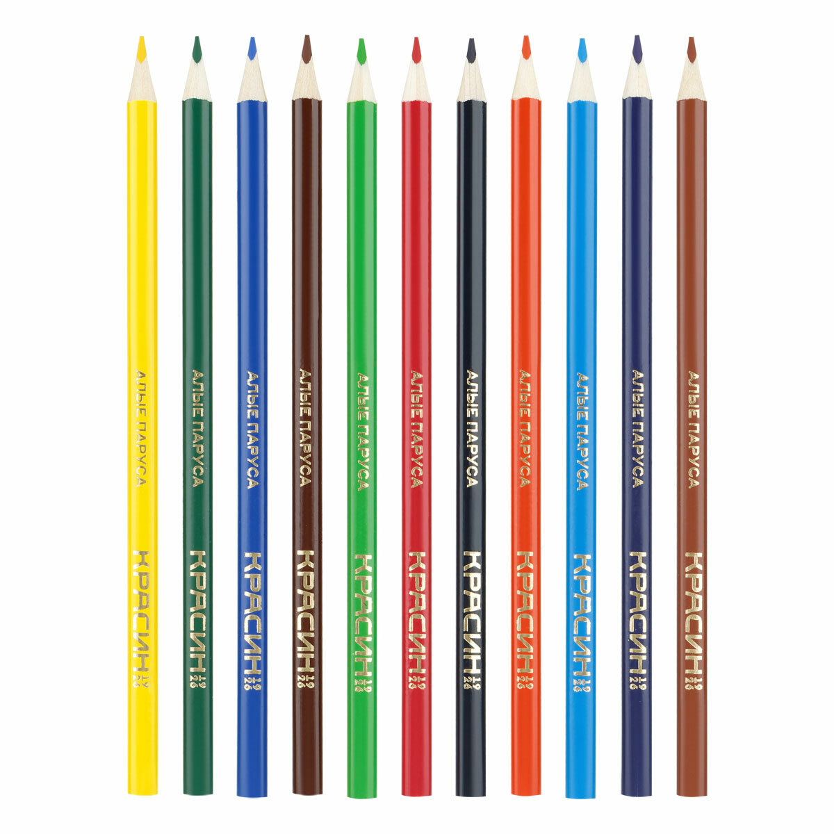 Карандаши цветные Красин серии Алые Паруса, 12 цветов, трехгранный корпус, заточенные, мягкие, набор для рисования и школы интересное: