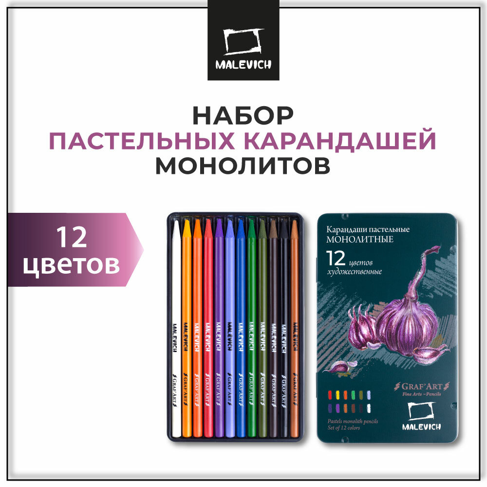 Набор пастельных карандашей монолитов Малевичъ, круглые 12 цветов интересное: