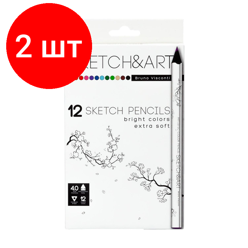 Купить Комплект 2 упаковок, Набор карандашей скетч-каранд.цвет.SKETCH&ARTУТОЛЩЕН.,4 MM,12 ЦВ.,30-0114
