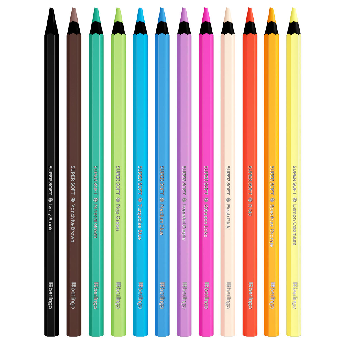 Купить Цветные карандаши для школы 12 цветов, шестигранные / Набор цветных карандашей для рисования школьный Berlingo "SuperSoft. Blackwood"