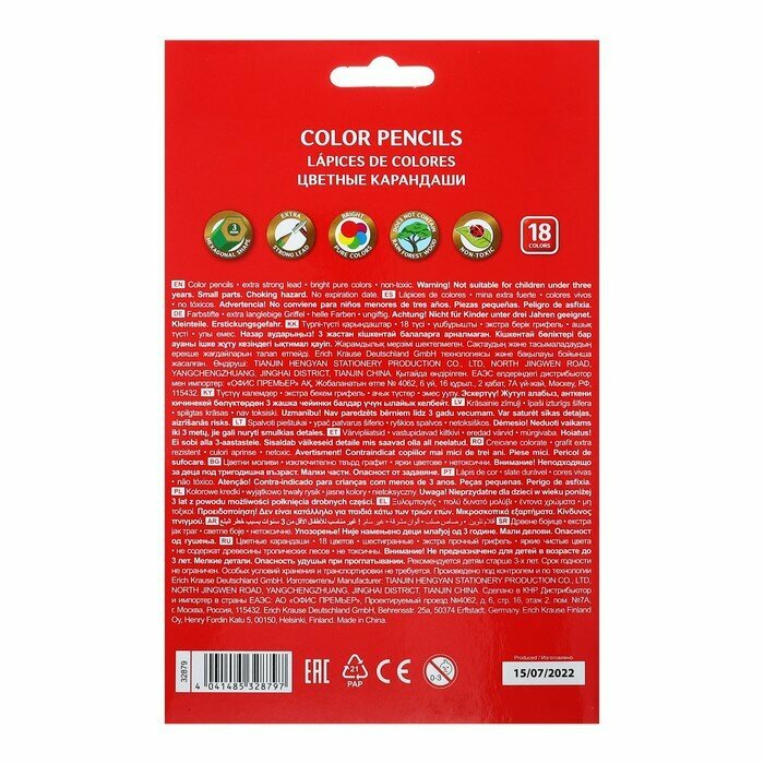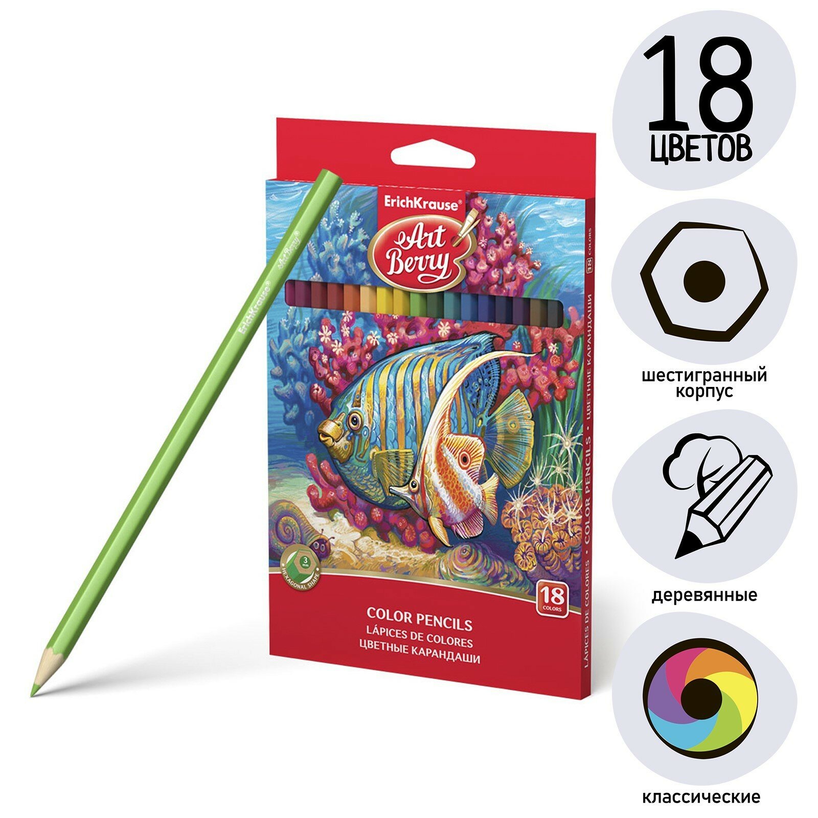 Карандаши 18 цветов ErichKrause ArtBerry премиум, дерево, шестигранные, яркий и мягкий грифель 3.0 мм, картонная упаковка, европодвес интересное: