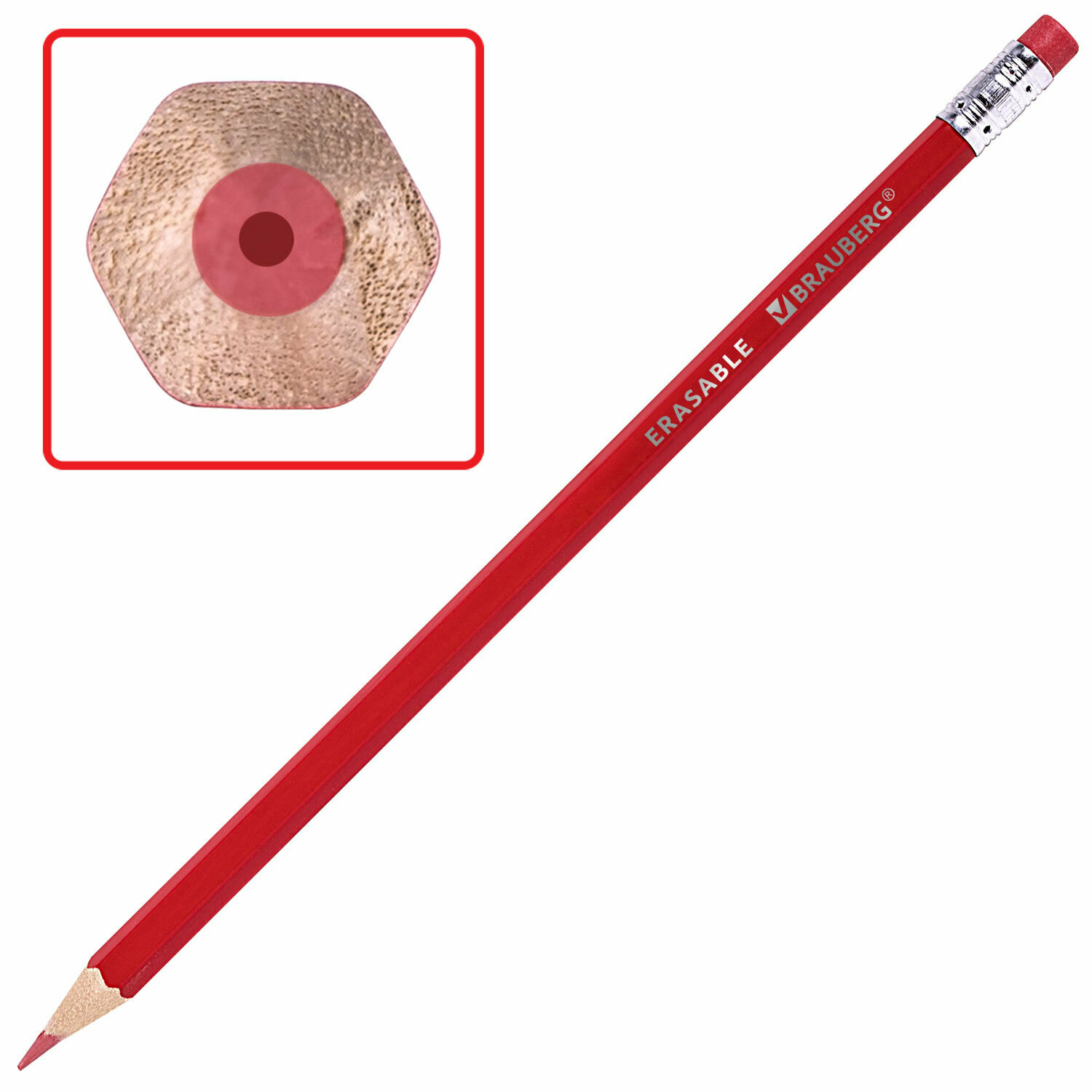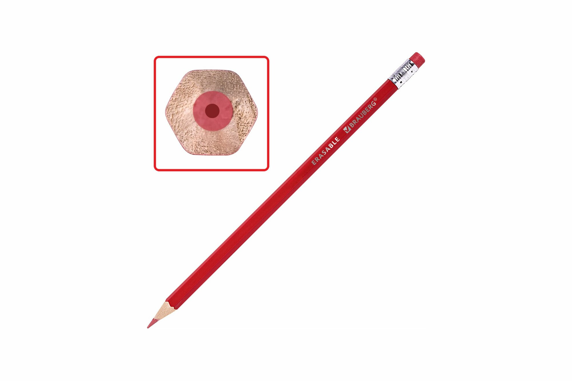 Карандаши цветные мягкие для рисования художественные стираемые с ластиком BRAUBERG ERASABLE, 12 цветов, шестигранные, грифель 3 мм, натуральное дерево, 181932