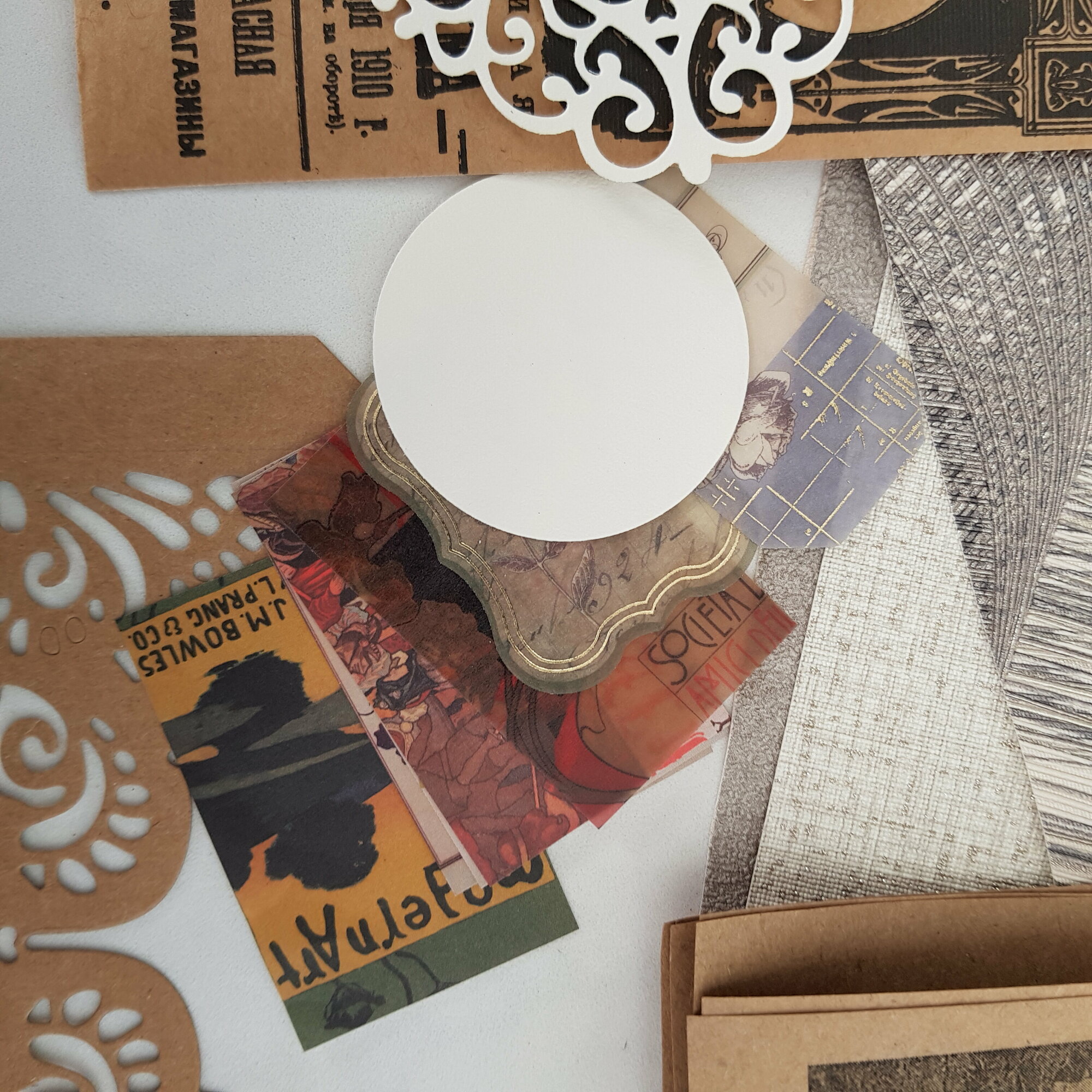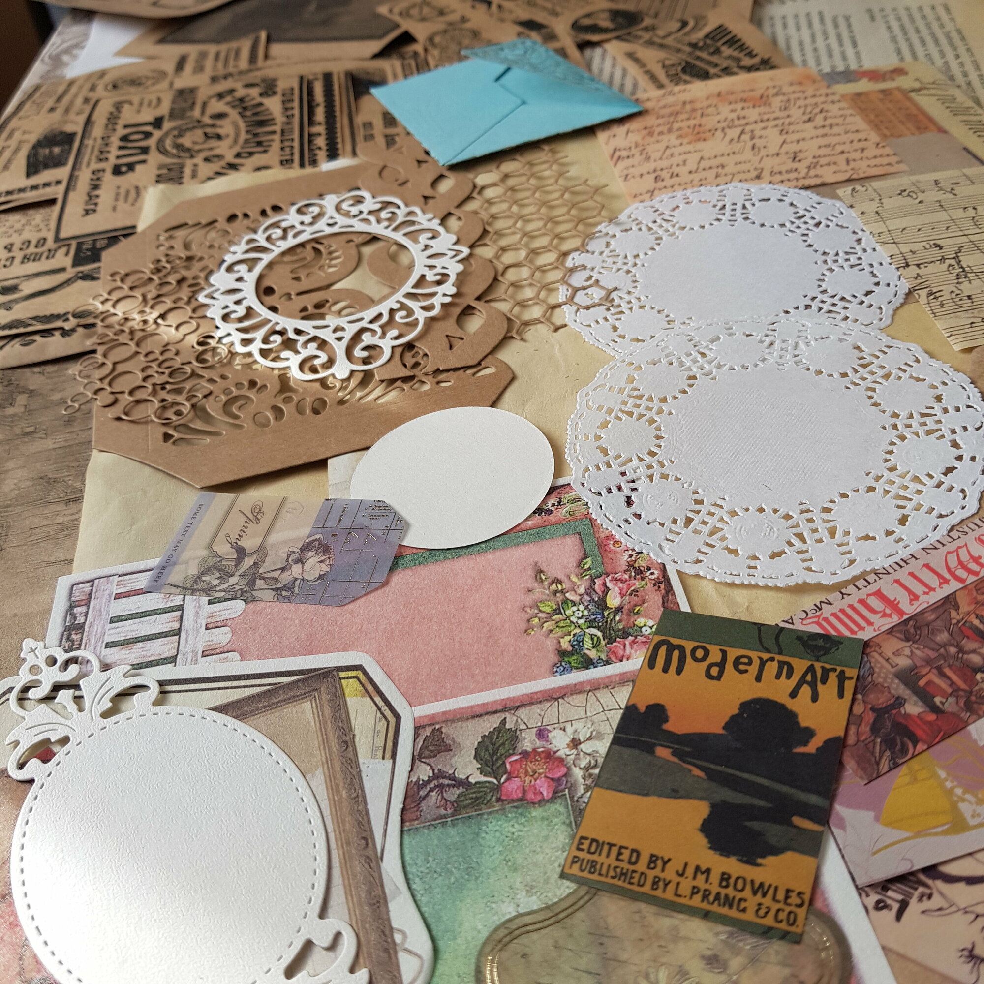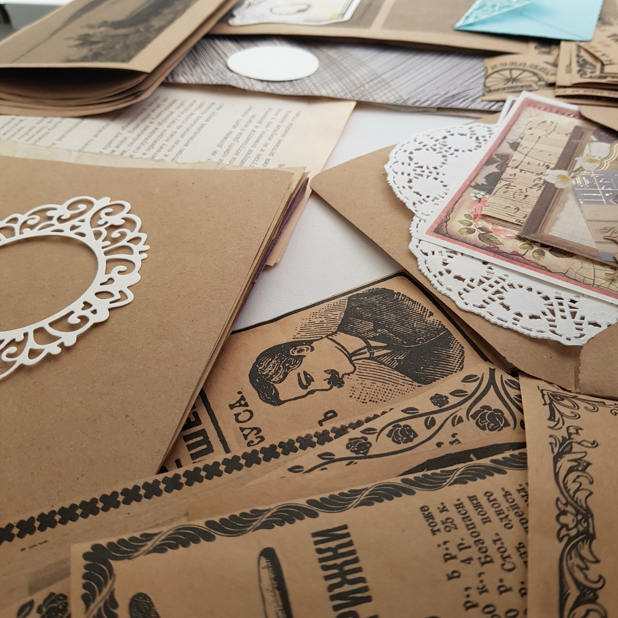 | В набор входит | вырезки из газет 22 шт, распечатки 20 шт, тонированные листы А4 3 шт, тонированные тетрадные листы 2 шт, конверты 2 шт, листы из книги 3 шт, текстурные листы 3 шт, украшения и вырубка 22 шт и пр |