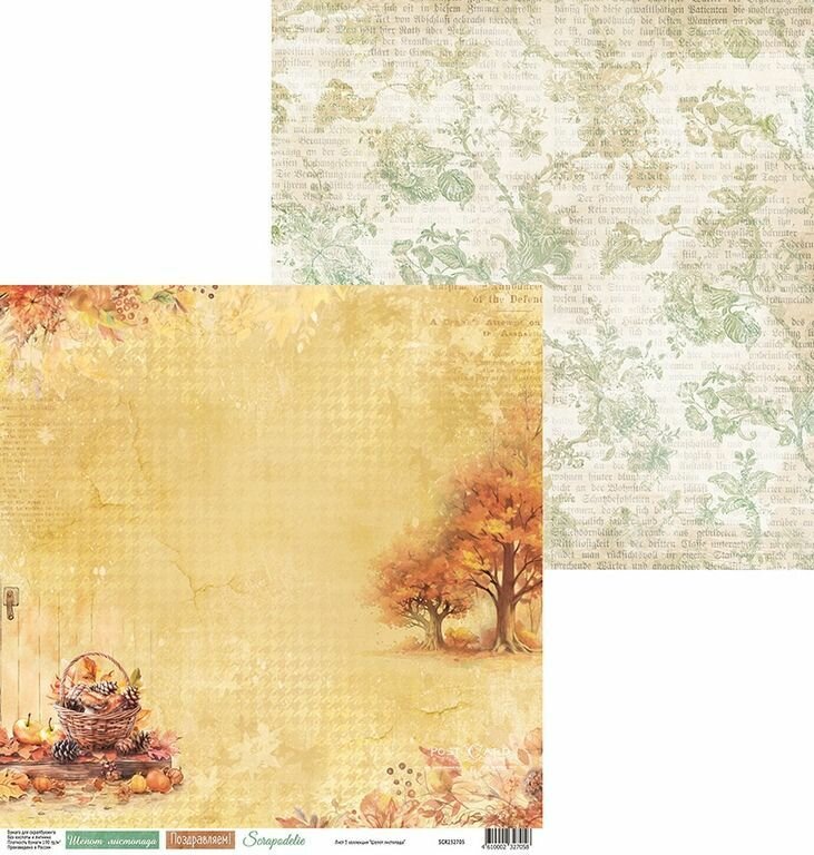 Набор осенней бумаги для скрапбукинга "Шепот листопада" 30х30 см от Scrapodelie интересное: