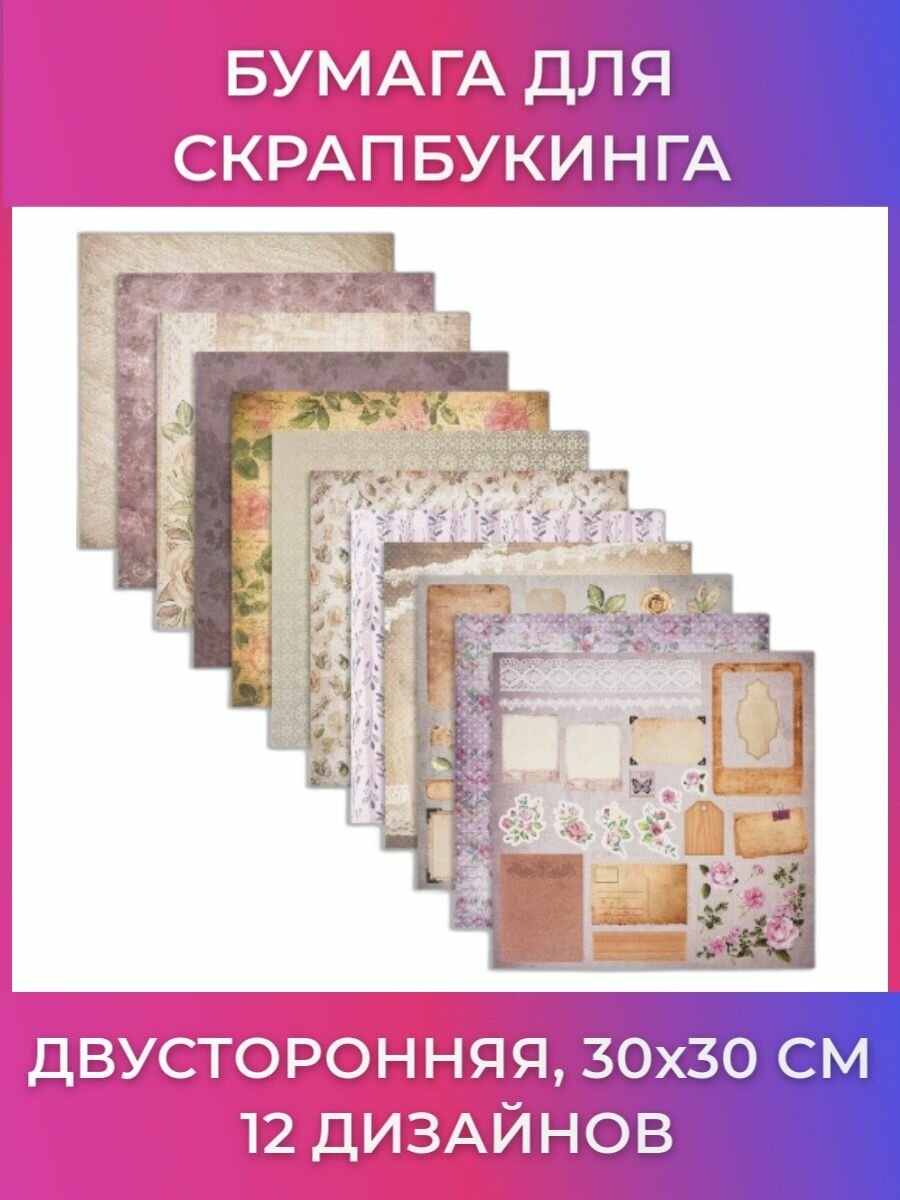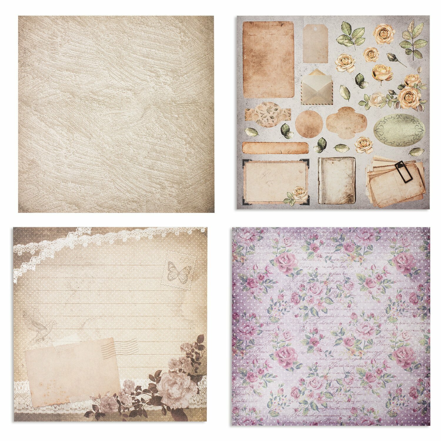 Купить Бумага для скрапбукинга 30х30 см "Винтаж", двусторонняя, 12 листов, 12 дизайнов, 180 г/м2, остров сокровищ, 662766, 2шт в компл.