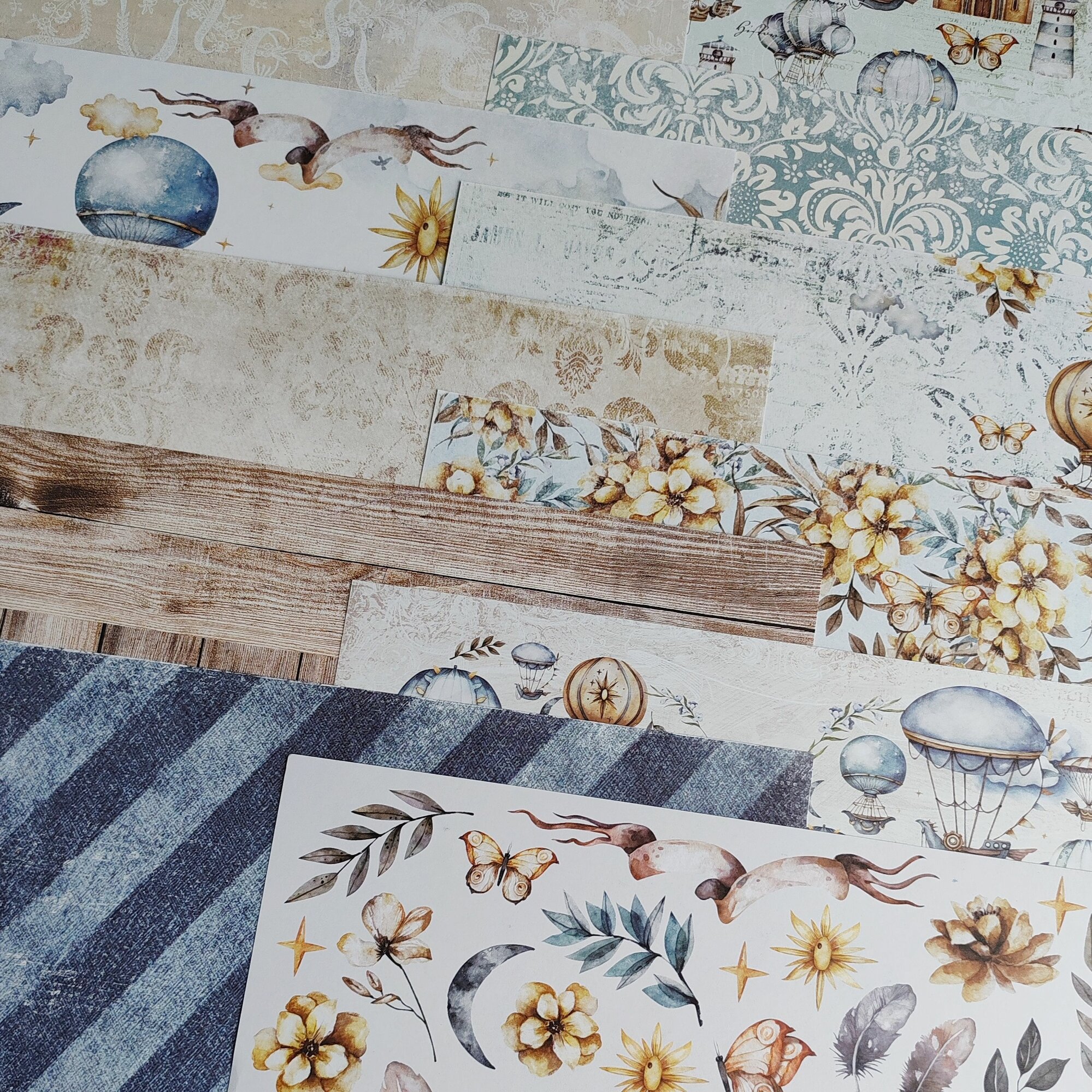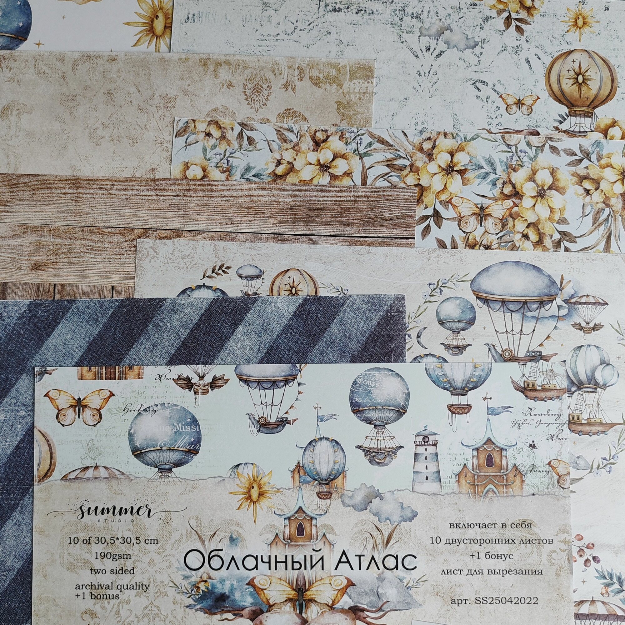 СохранитьНабор двусторонней бумаги "Облачный атлас" 250гр, от Summer Studio, 30,5*30,5см, 10 листов + 1 бонус интересное: