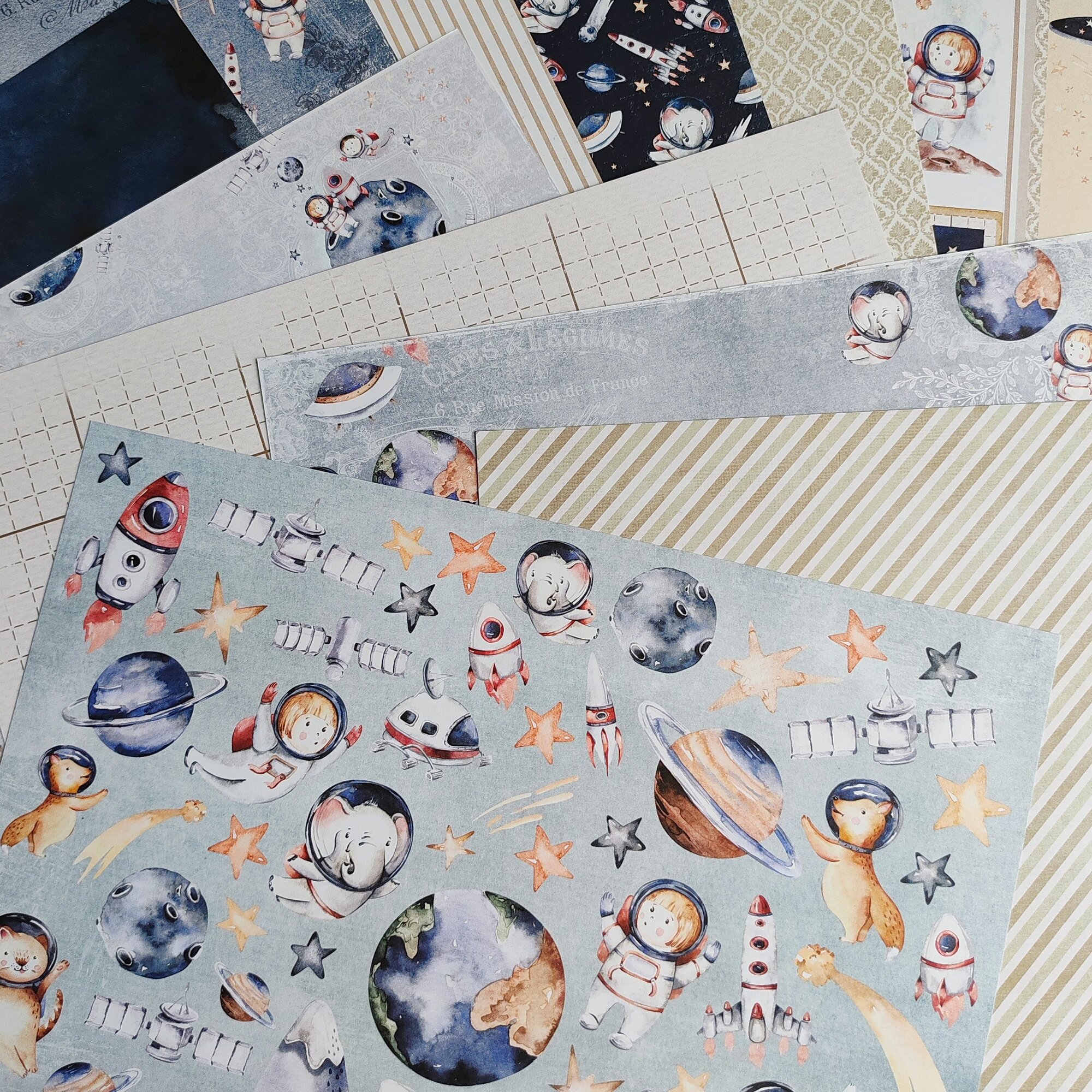 СохранитьНабор двусторонней бумаги "To the moon and back" 190гр, от Summer Studio, 30,5*30,5см, 10 листов + 1 бонус интересное: