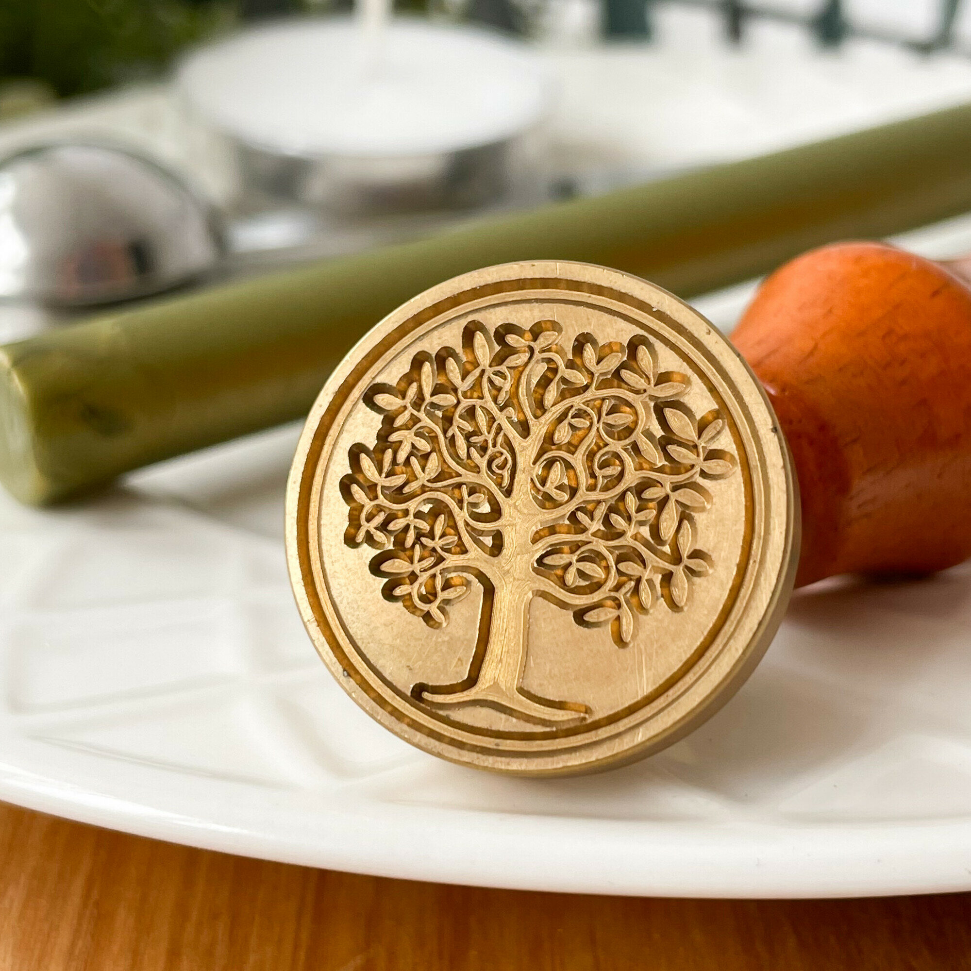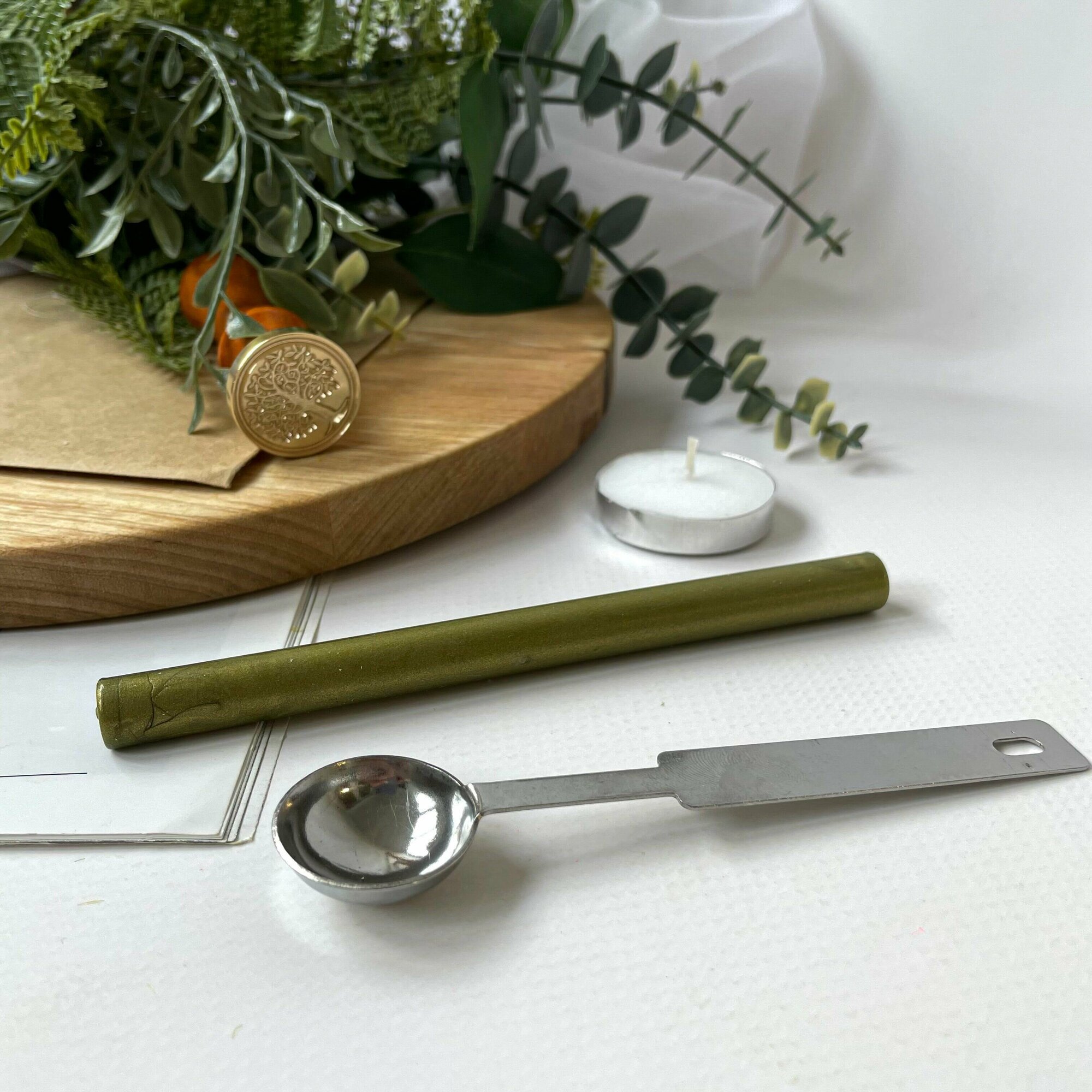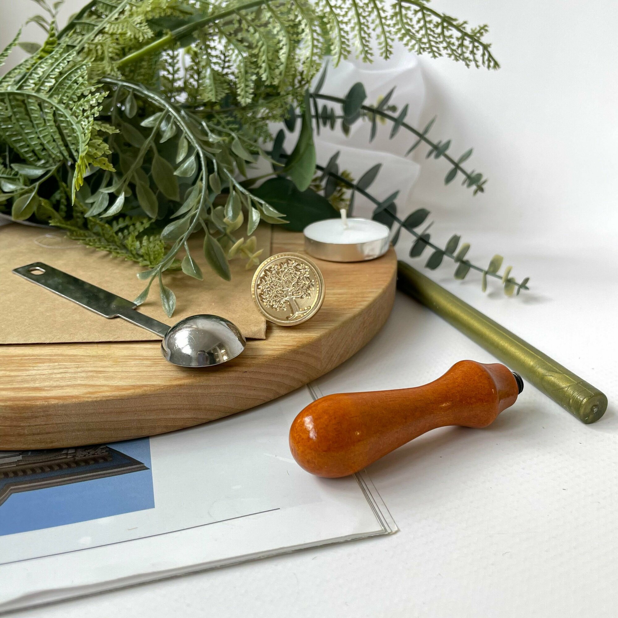 Купить Сургучная печать для декорирования, набор: печать, ложечка, сургуч, свеча. Дизайн Деревце с листьями.