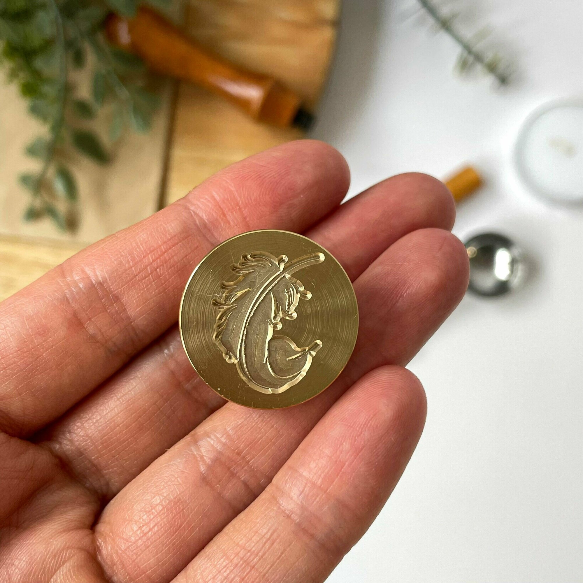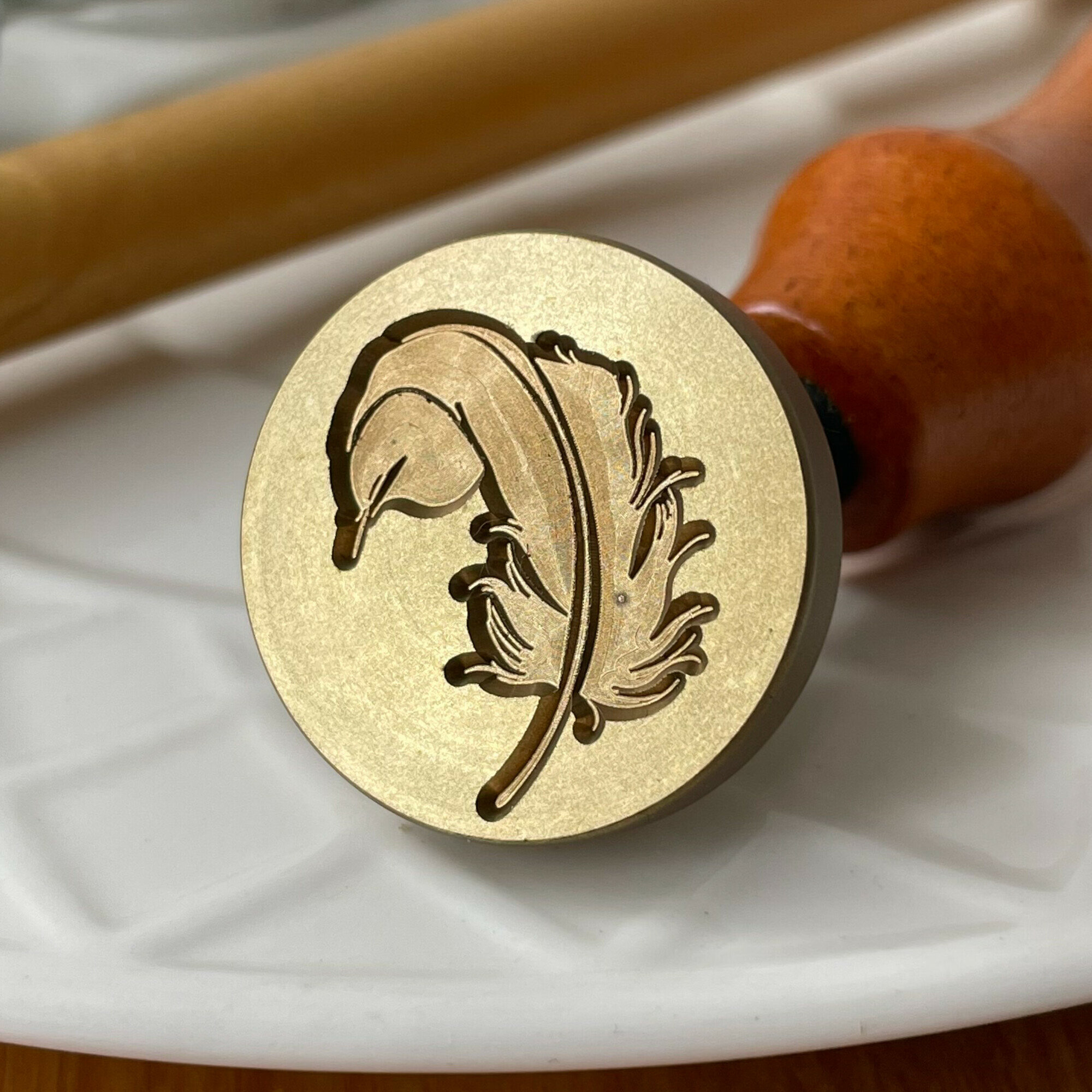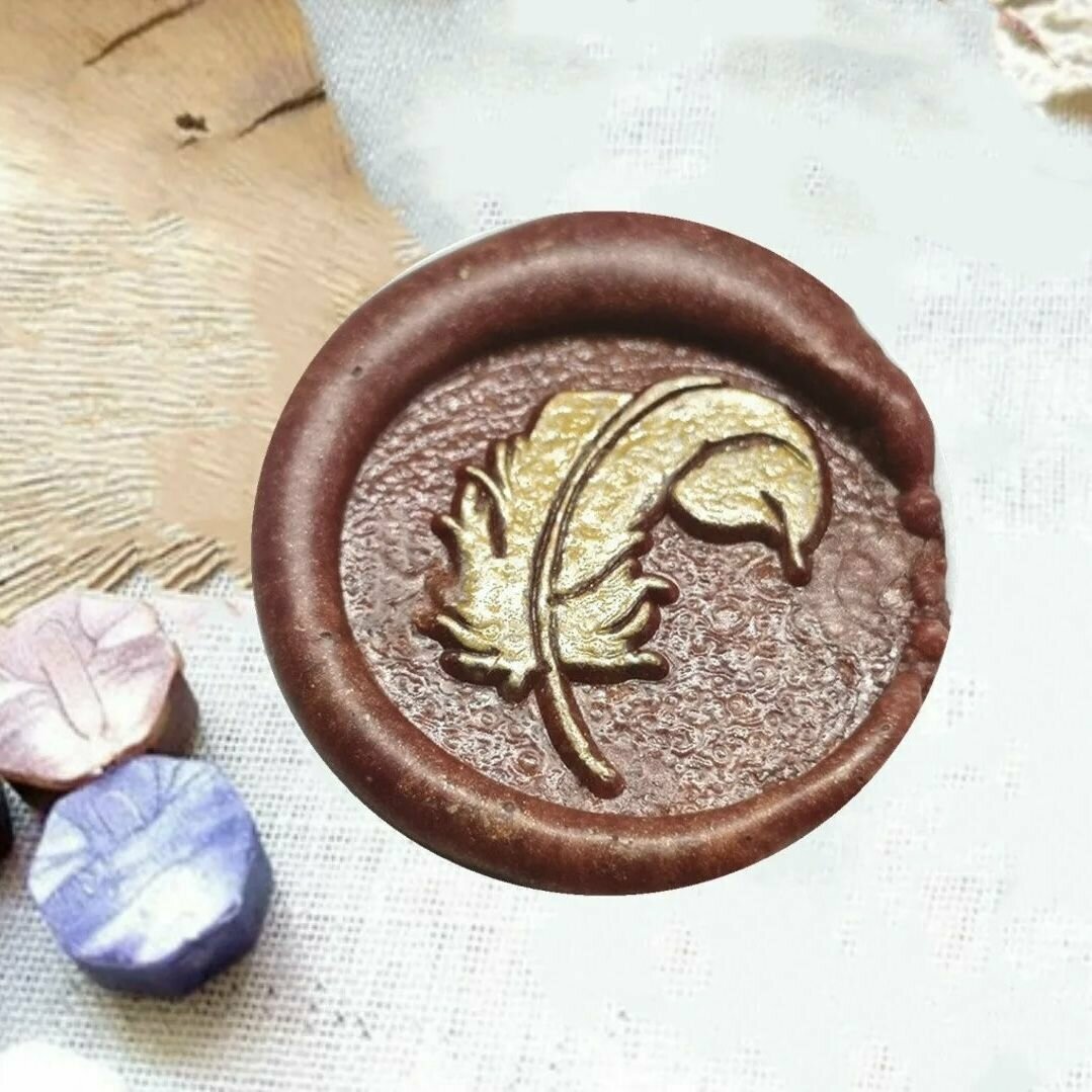 Купить Сургучная печать для декорирования, набор: печать, ложечка, сургуч, свеча. Дизайн Перышко.