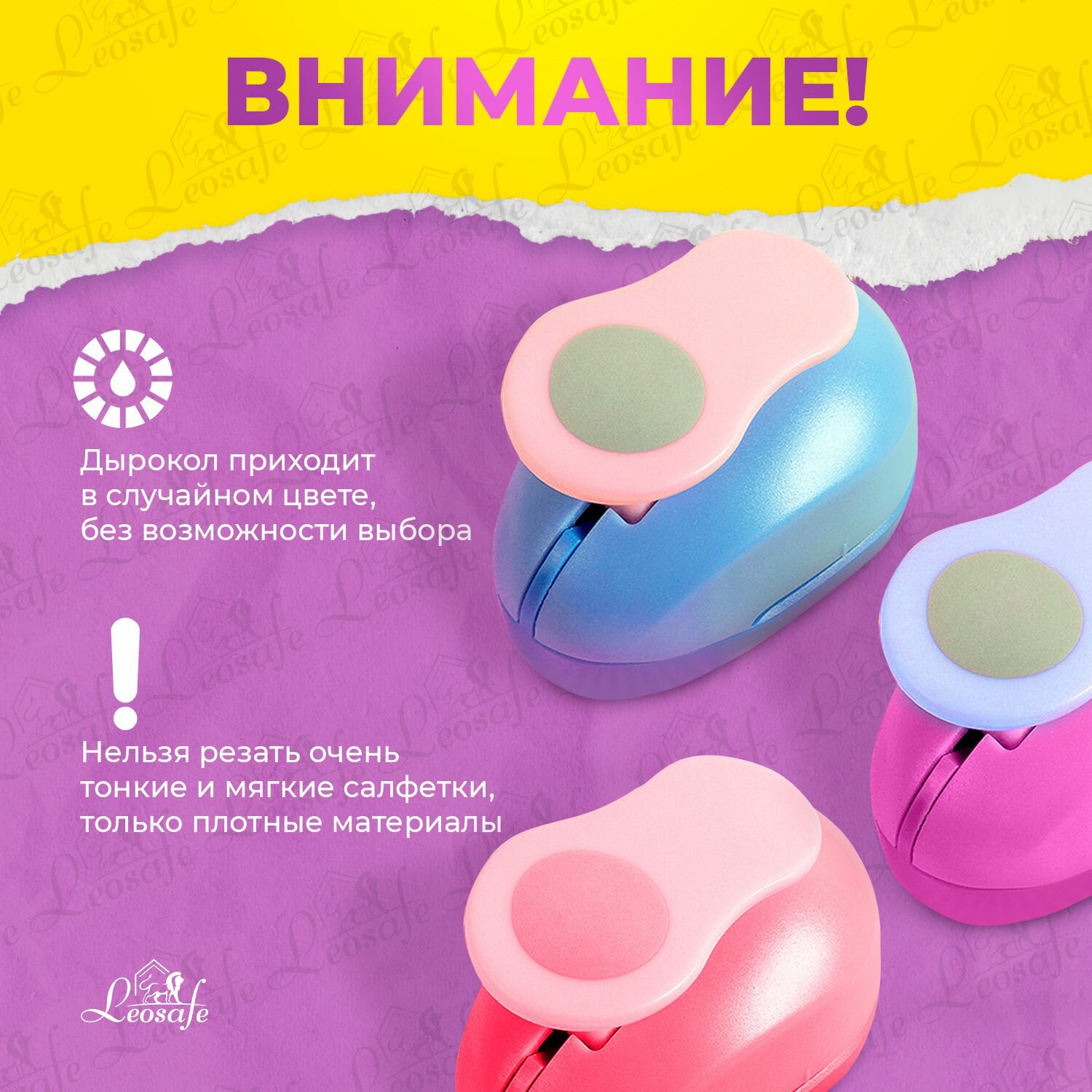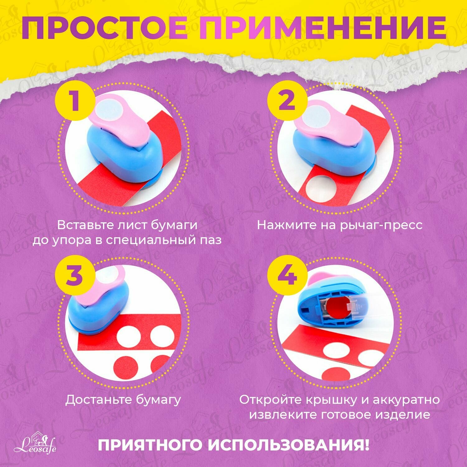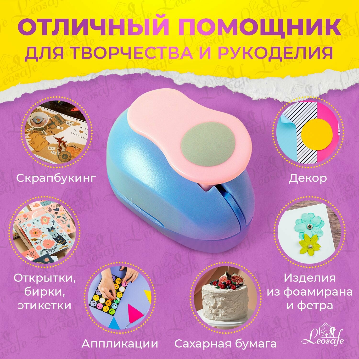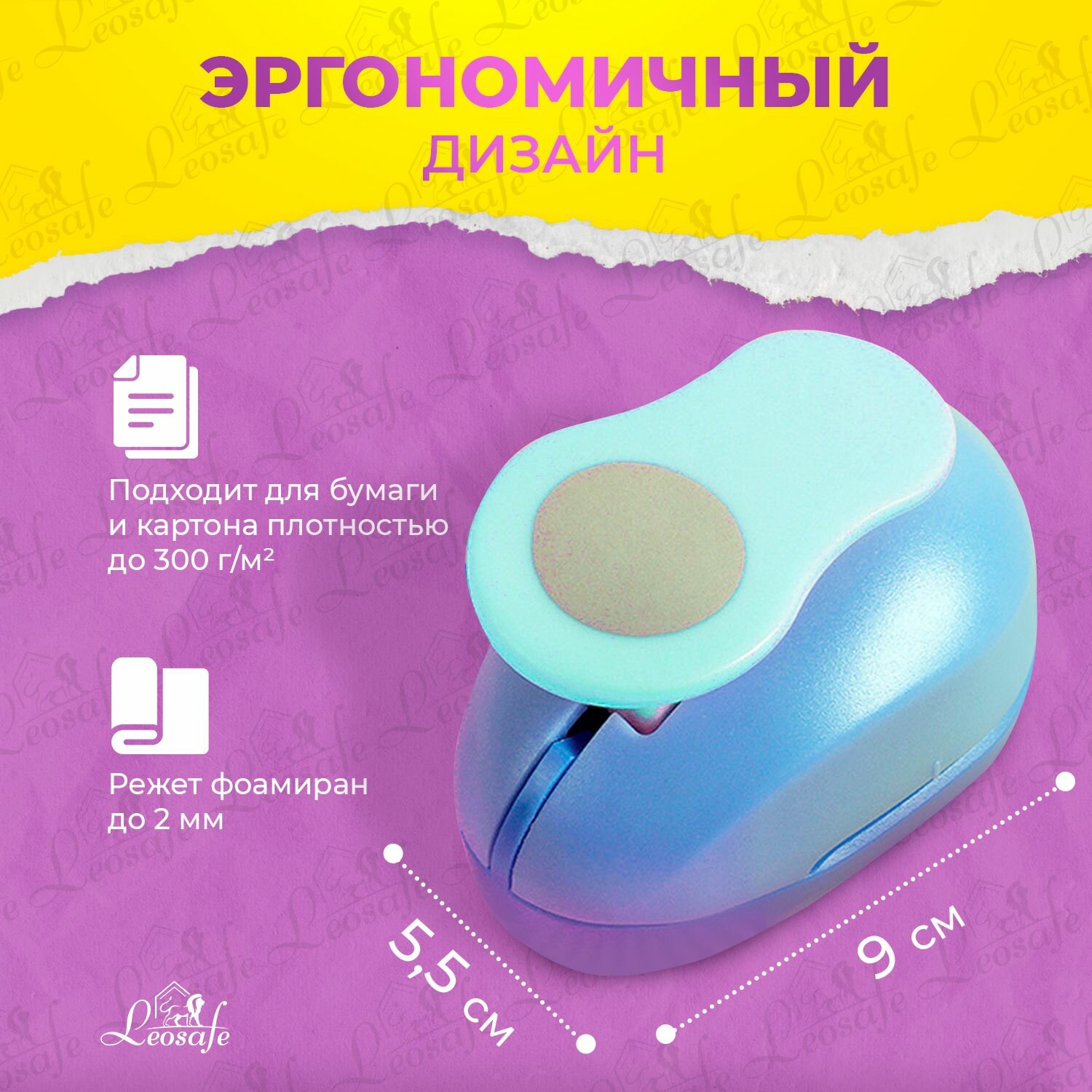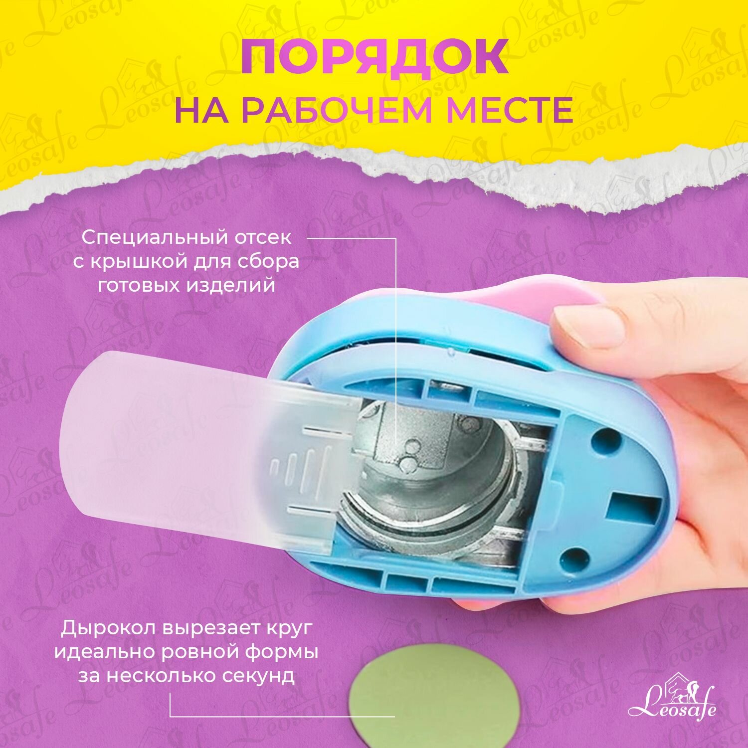Дырокол LeoSafe "Фигурный Круг", 38мм, для бумаги, картона, ткани