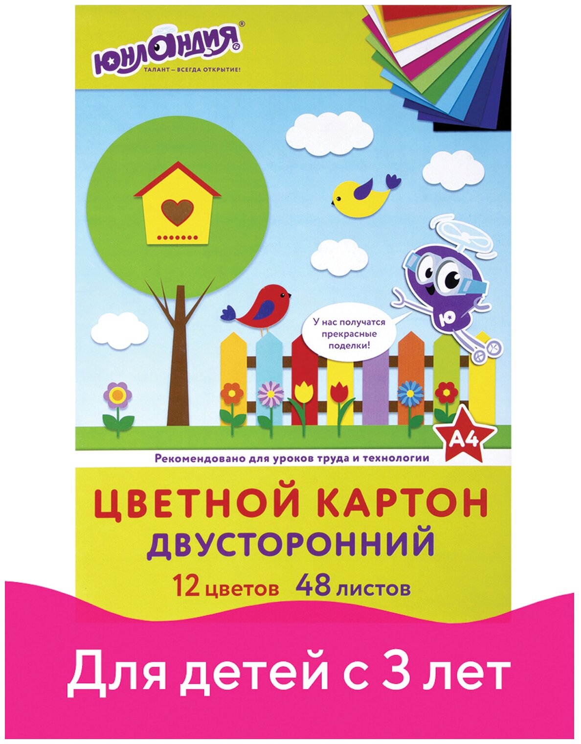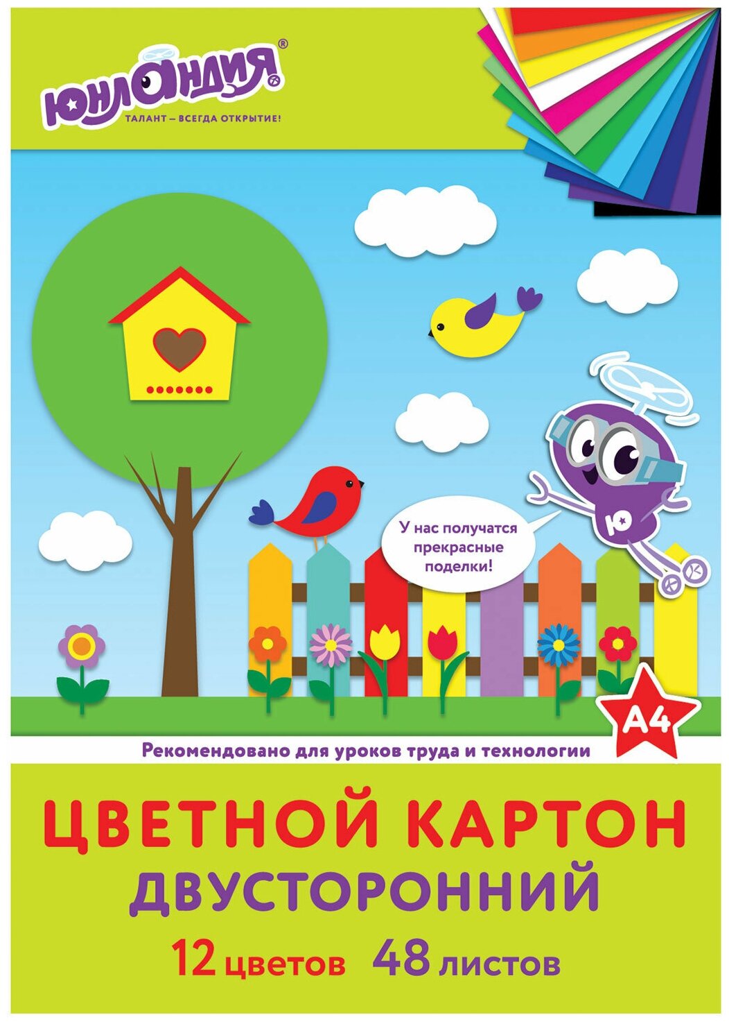 Картон цветной А4 тонированный в массе 48л 12цв Юнландия интересное: