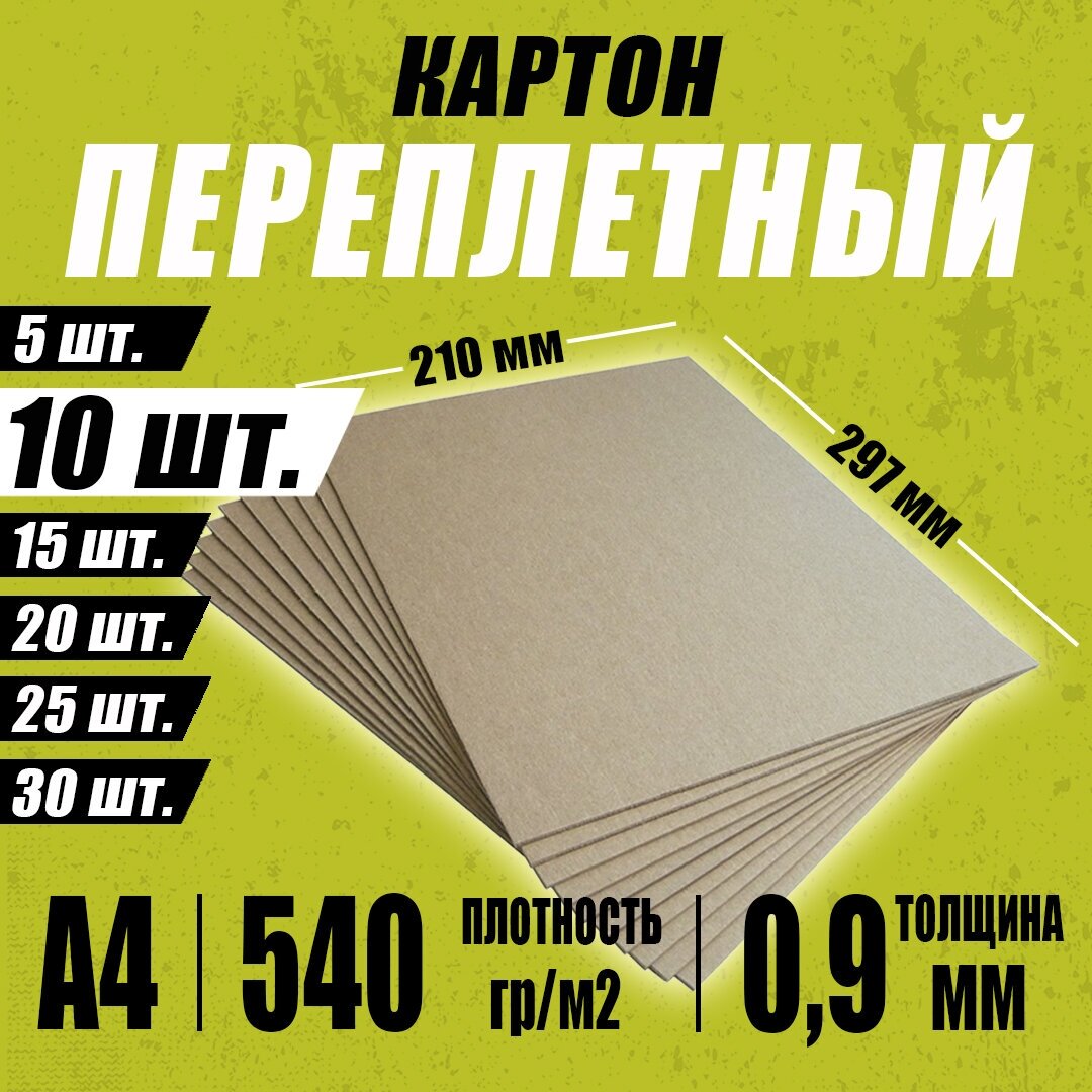 Переплетный картон плотный 0,9 мм формат А4 210х297 мм для скрапбукинга, творчества, рисования и рукоделия, 10 шт. интересное: