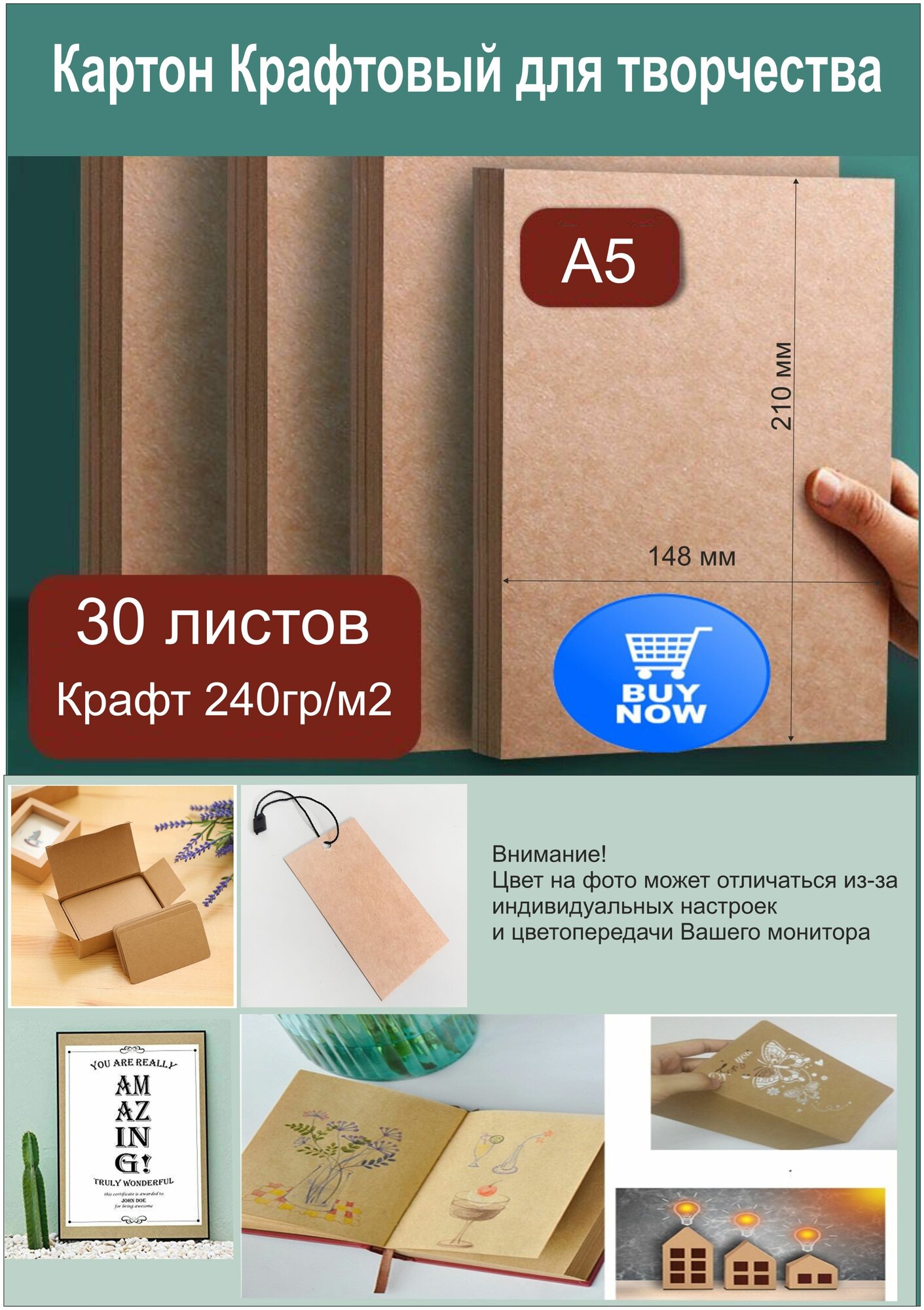 Купить Картон для творчества крафтовый. Картон для скрапбукинга и декорирования. Формат А5. 30 листов.