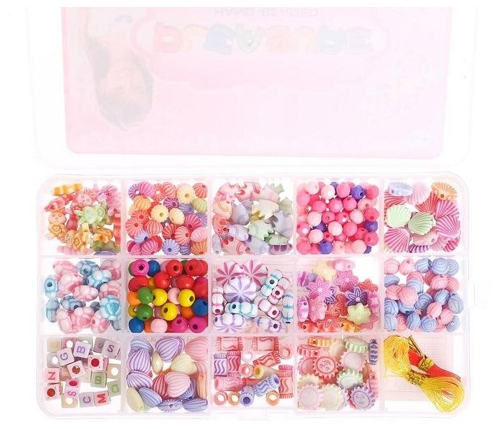 Большой набор 28 цветов бисера для плетения с силиконовой леской 0,8 мм и ножницами, размер органайзера 22,5 х 13,5 см BSD03/201288129