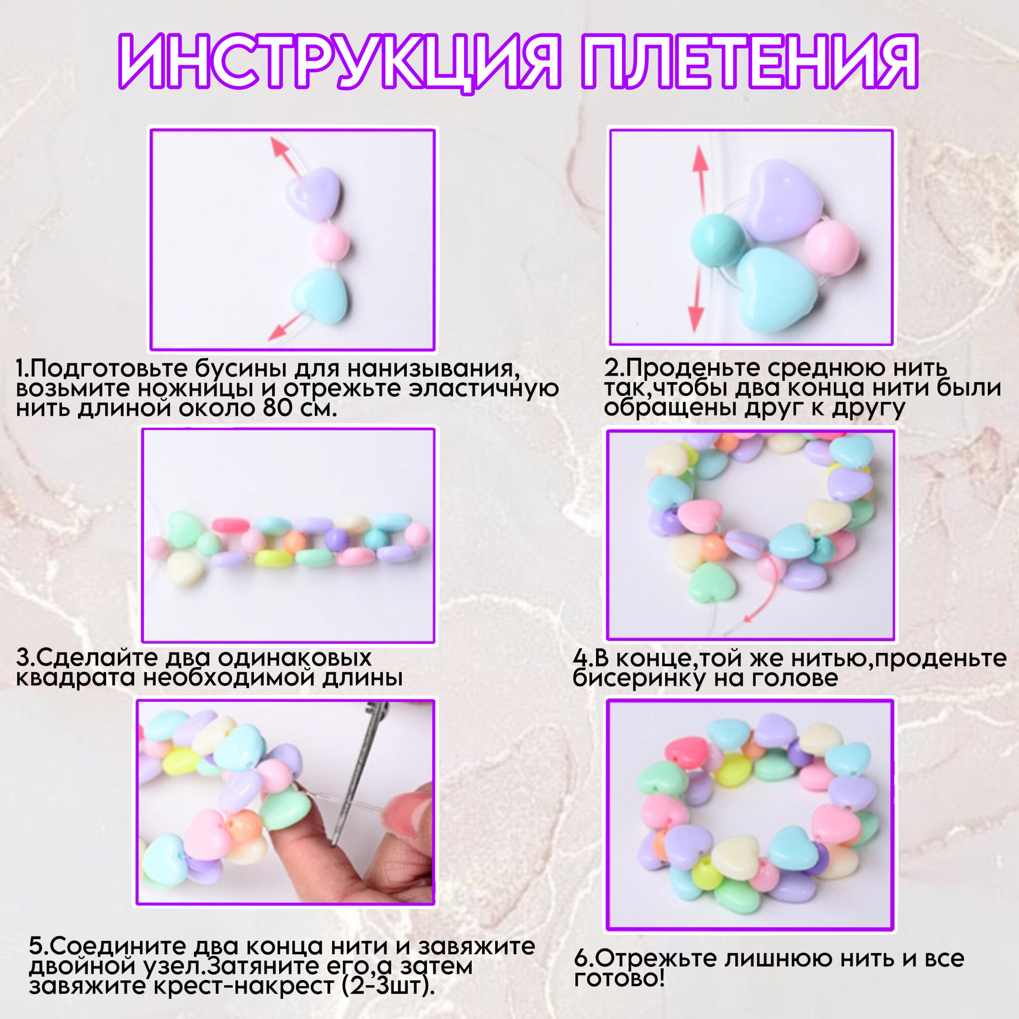 | Комплектация | около 500 бусин; леска; ободок; ножницы |