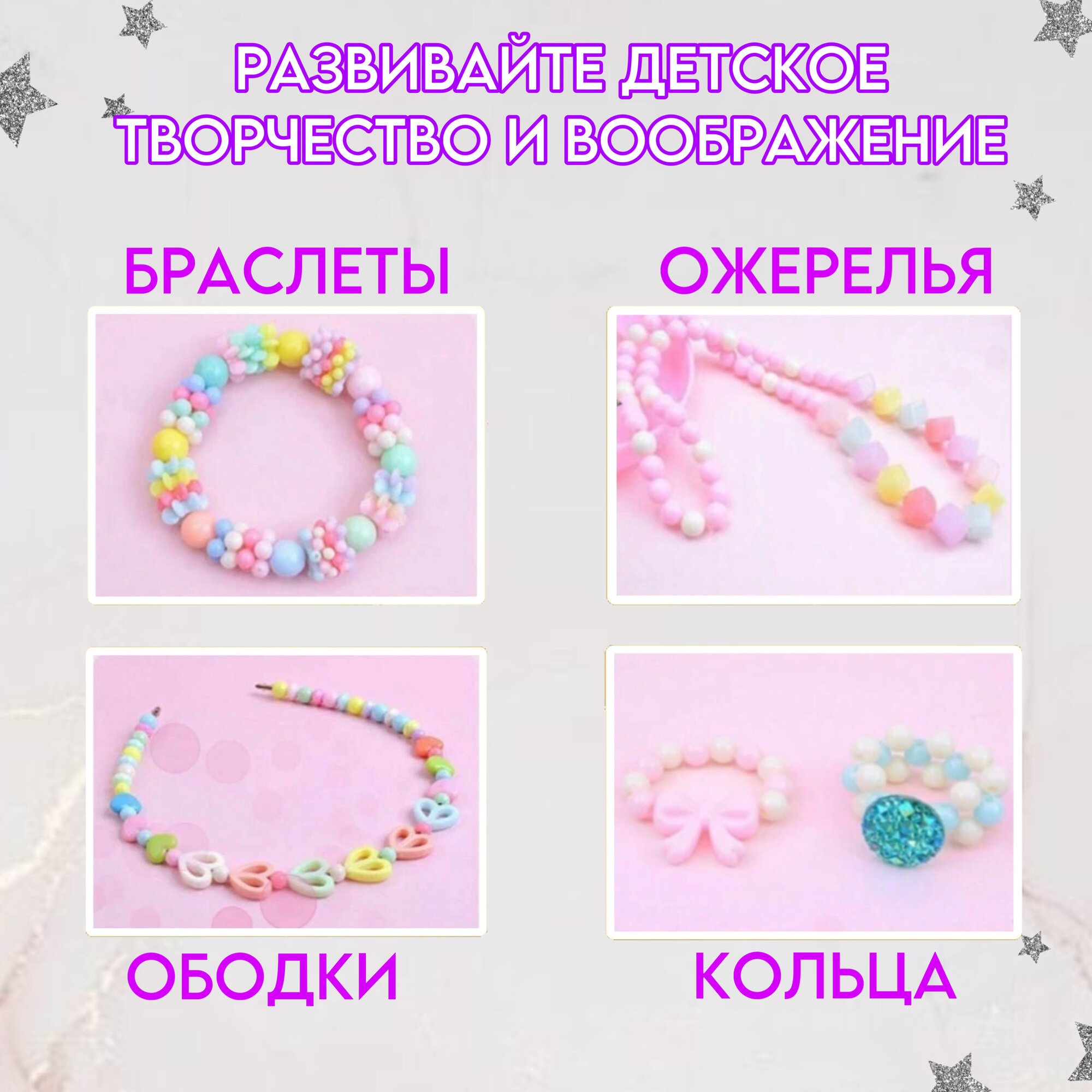 | Дополнительная информация | набор для творчества; для создания украшений; ободков, фенечек, колечек, чокеров; подарочный набор для девочек; набор из разноцветных бусин; |