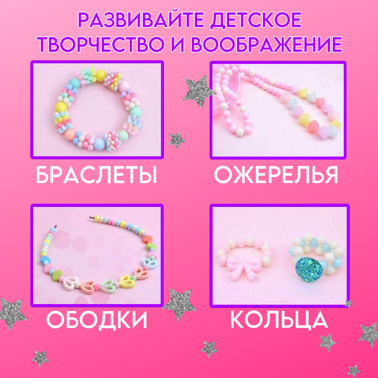 | Дополнительная информация | набор для творчества; для создания украшений; ободков, фенечек, колечек, чокеров; подарочный набор для девочек; набор из разноцветных бусин; |