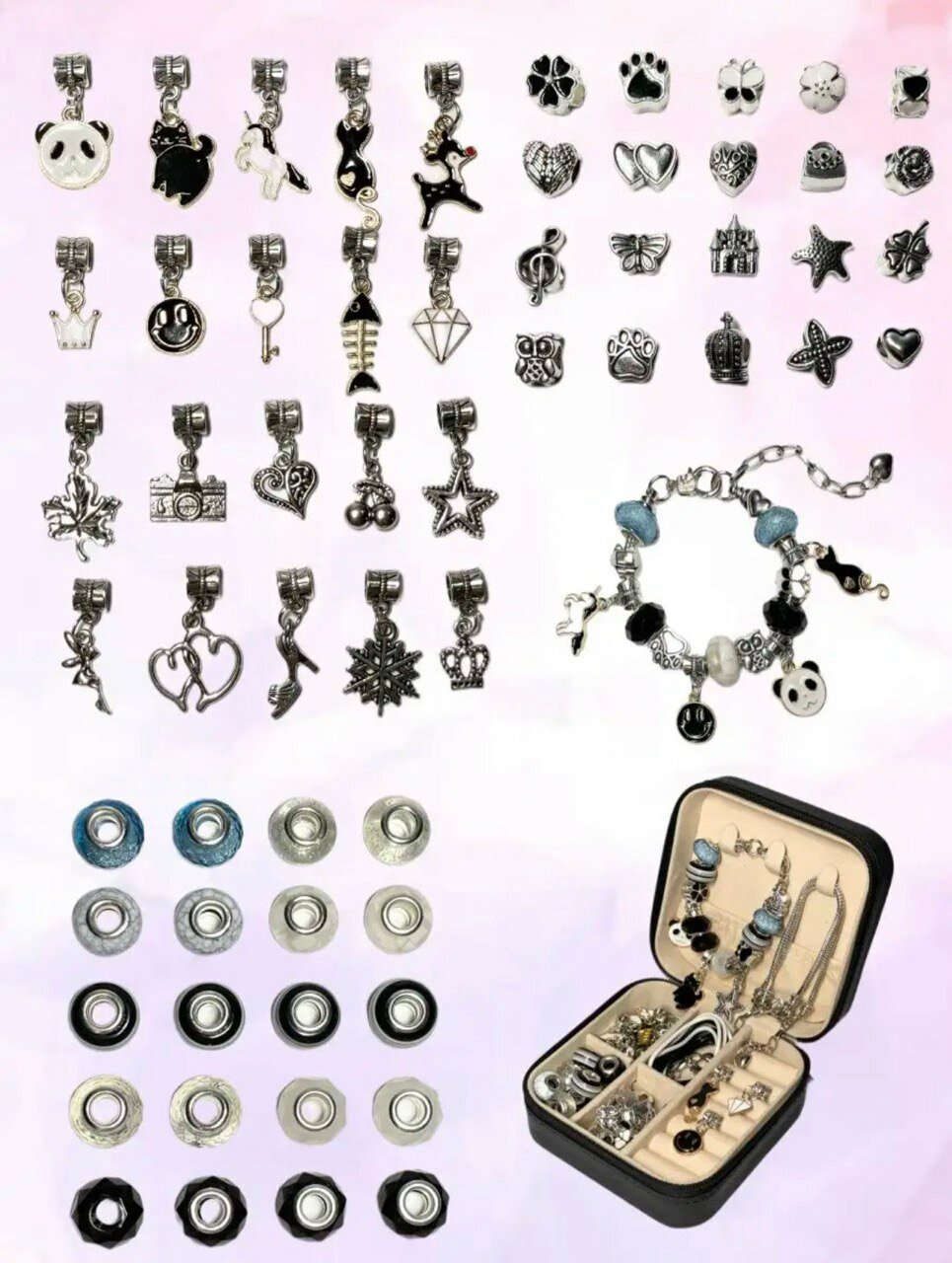 Купить Черный набор для создания браслетов и украшений в шкатулке, подарок для девочки и подруги на день рождения