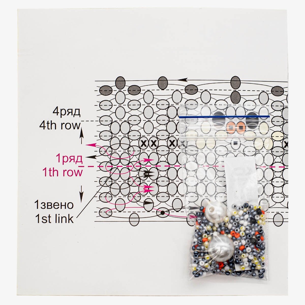 | Комплектация | 6 видов бисера, 2 вида бусин, игла, цветная схема |